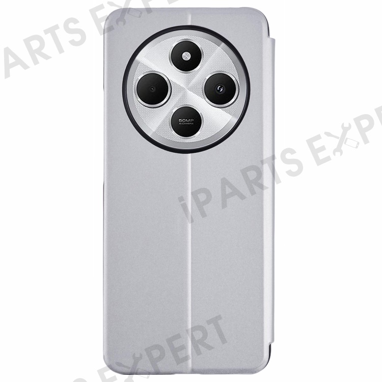Leather Case for Xiaomi Poco C75 4G / Redmi 14R 5G / 14C 4G View Window Stand Flip Phone Cover - Silver