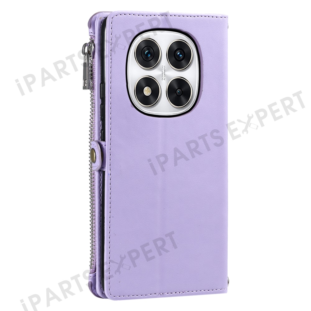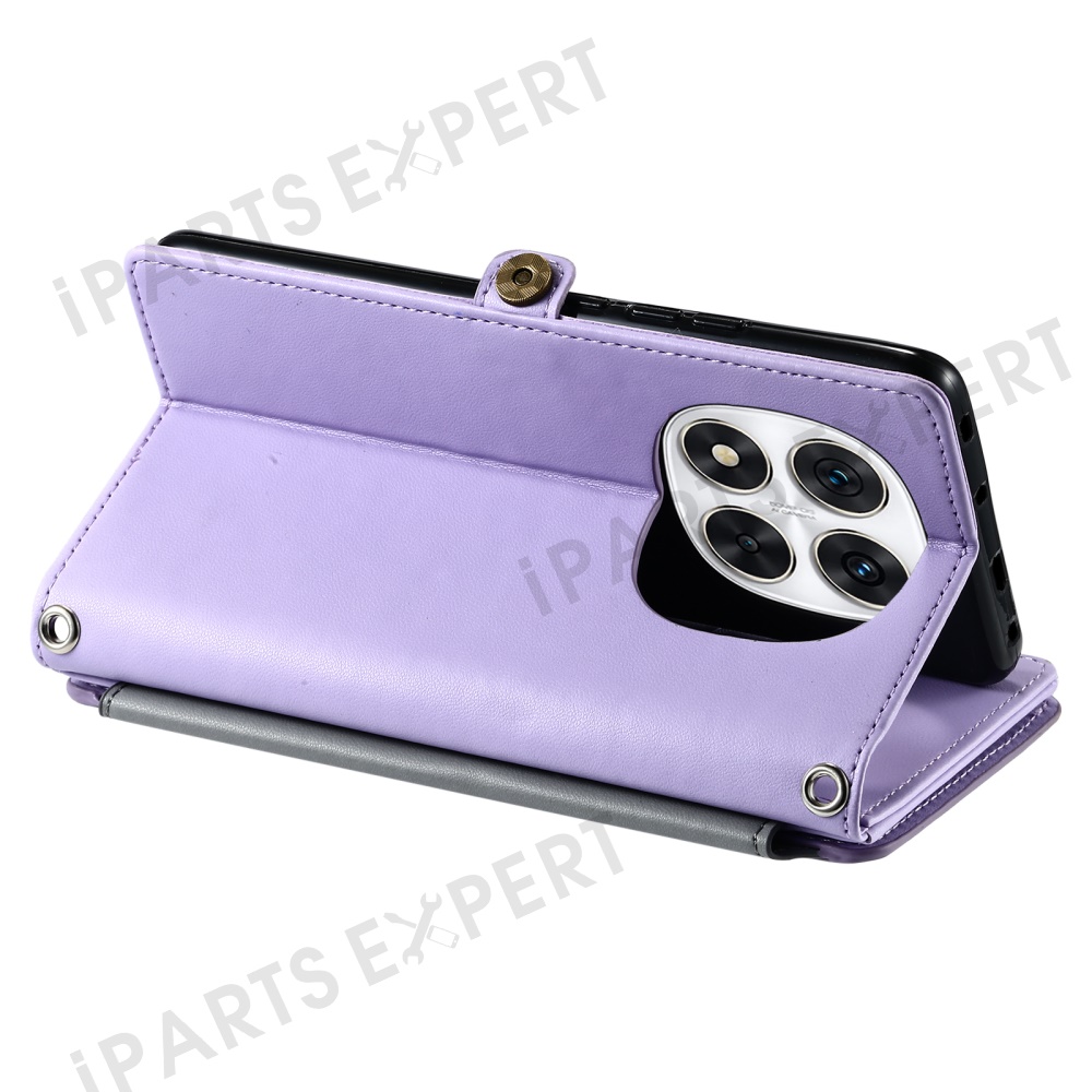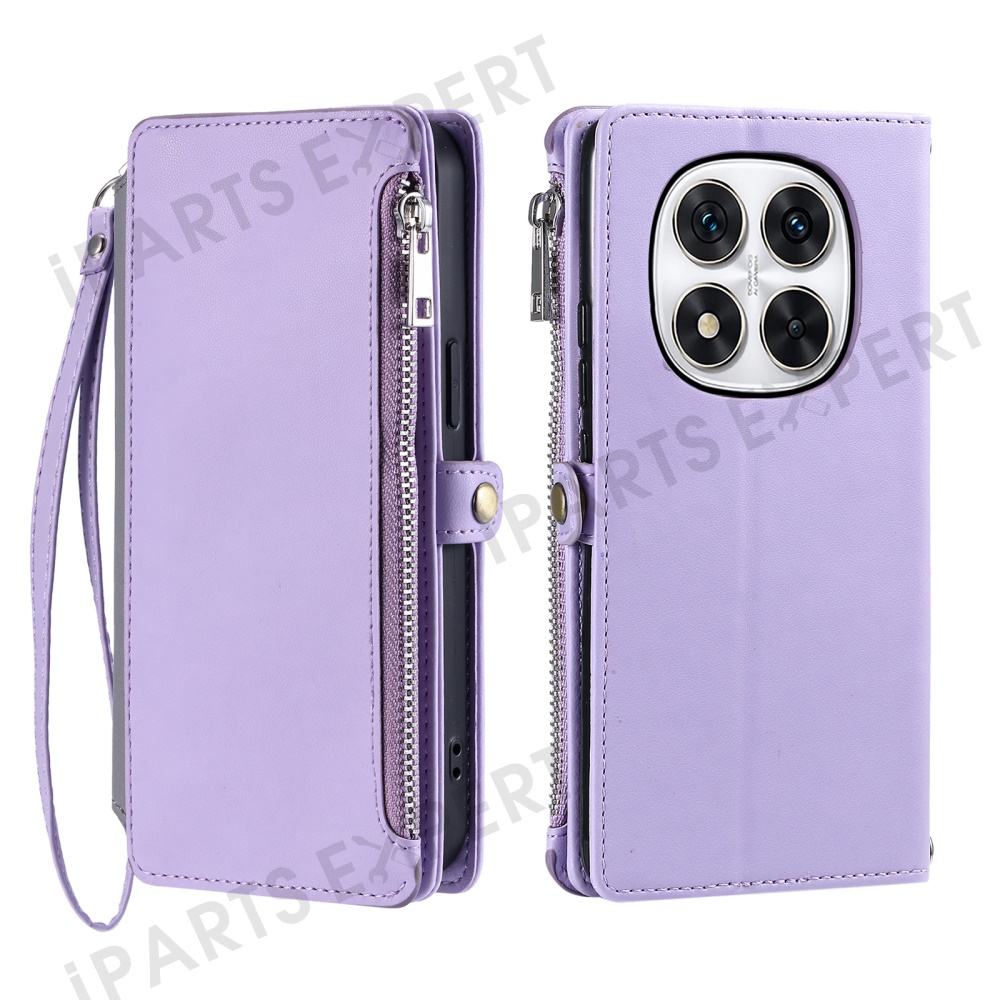 Leather Case for Xiaomi Redmi Note Note 14 Pro+ 5G / 14 Pro 5G / Poco X7 5G TPU+PU Wallet Phone Cover with Straps - Purple
