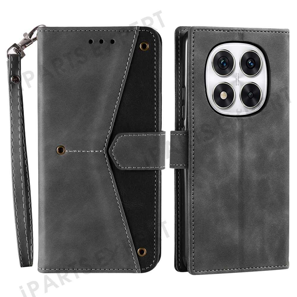 Leather Case for Xiaomi Redmi Note 14 Pro+ 5G / 14 Pro 5G / Poco X7 5G Wallet Phone Cover Splicing Stitching - Grey