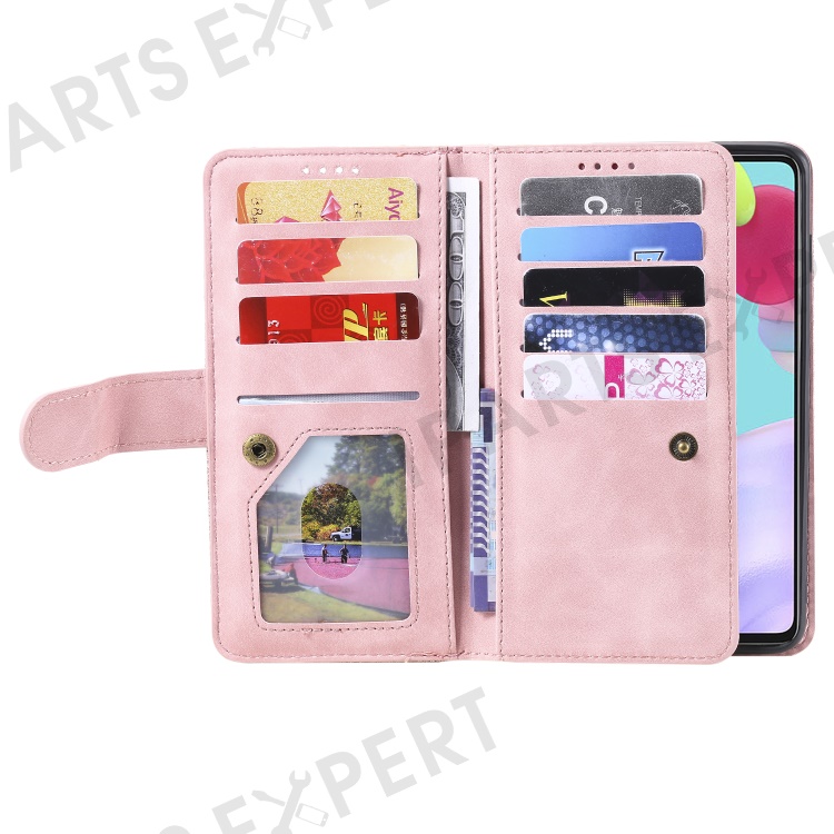 Leather Coated TPU Wallet Phone Stand Case with 9 Card Slots Kickstand Shell for Samsung Galaxy A52 4G/5G / A52s 5G - Pink