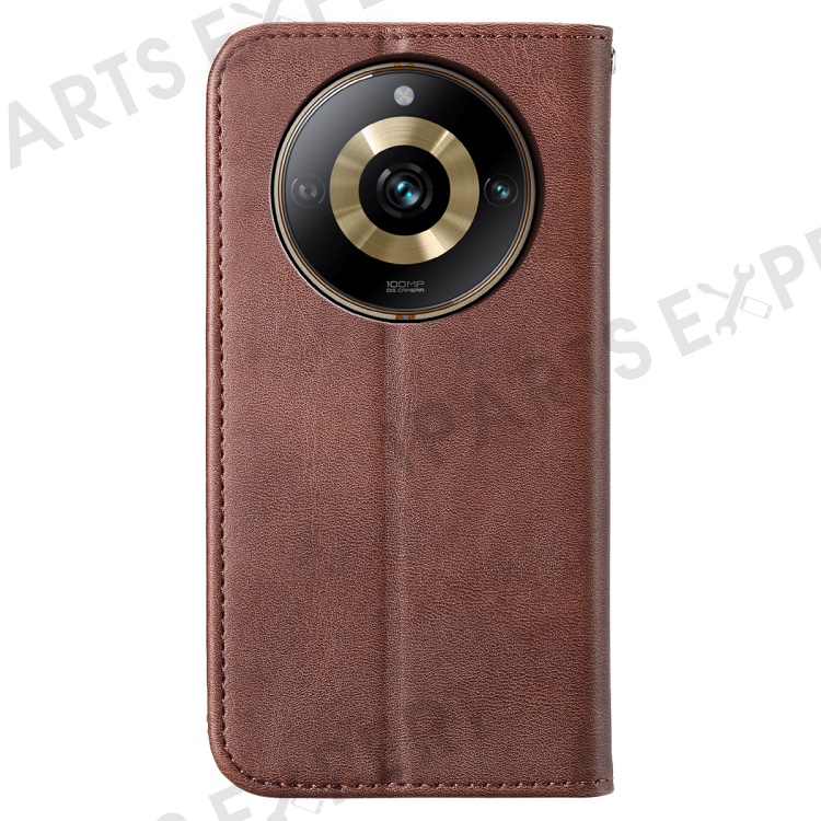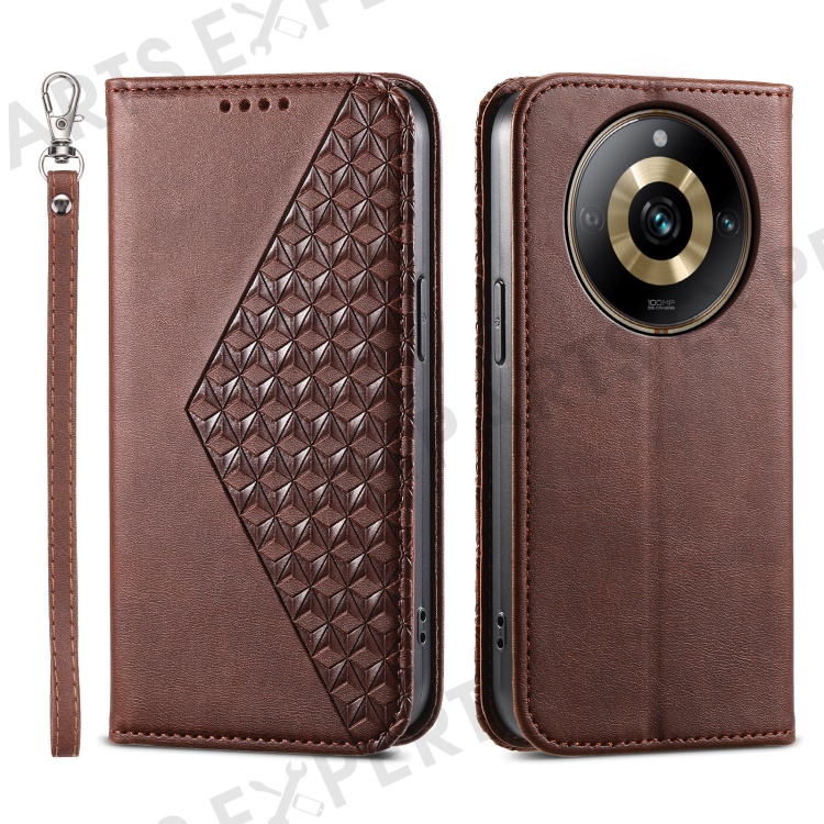 Leather Phone Case for Realme 11 Pro 5G Anti-fall Imprinted Rhombus Pattern Wallet Stand Cover - Brown
