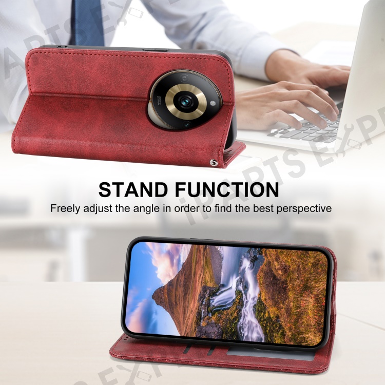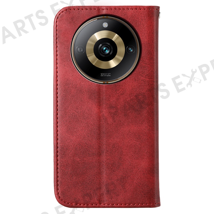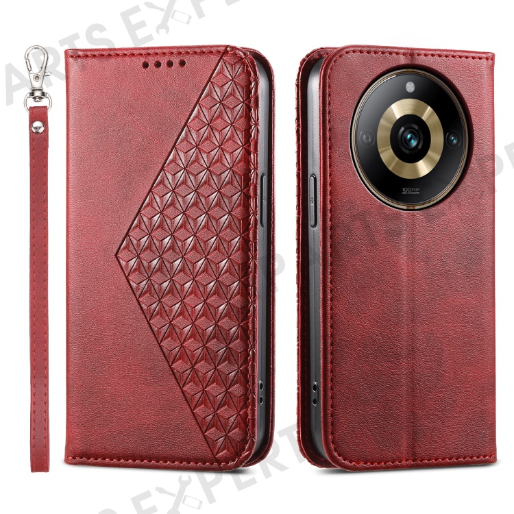 Leather Phone Case for Realme 11 Pro 5G Anti-fall Imprinted Rhombus Pattern Wallet Stand Cover - Red