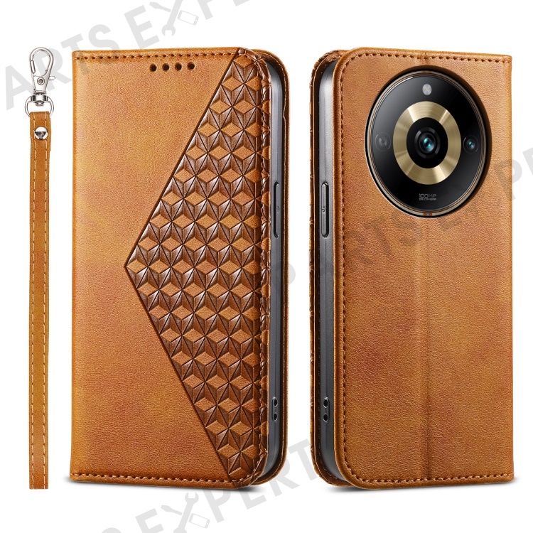Leather Phone Case for Realme 11 Pro 5G Anti-fall Imprinted Rhombus Pattern Wallet Stand Cover - Yellow