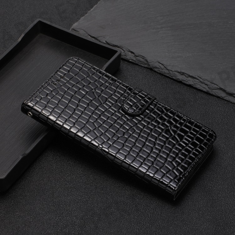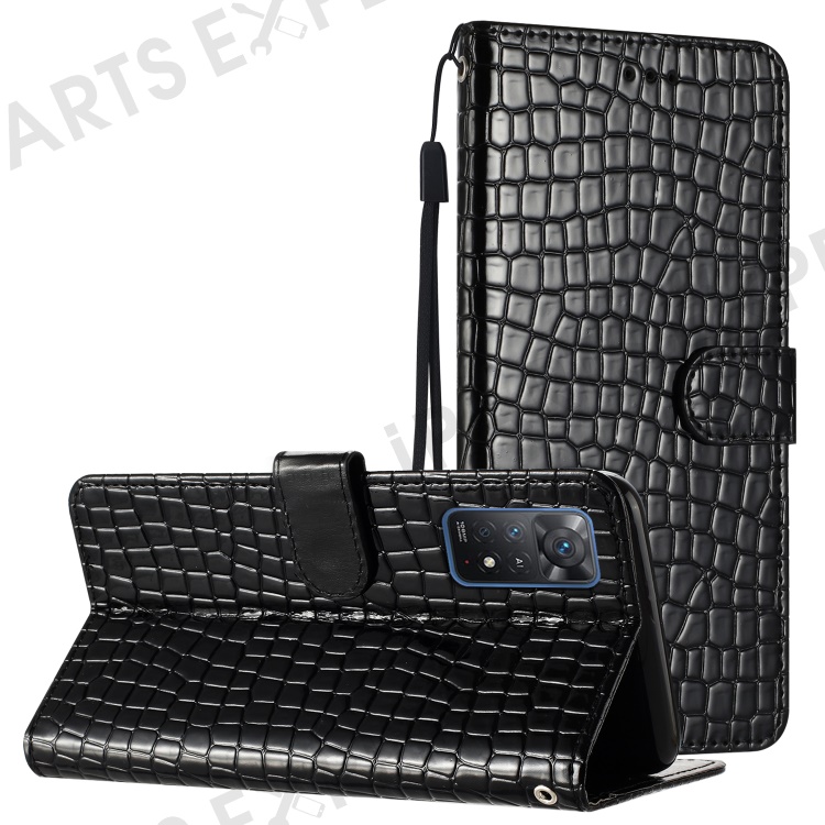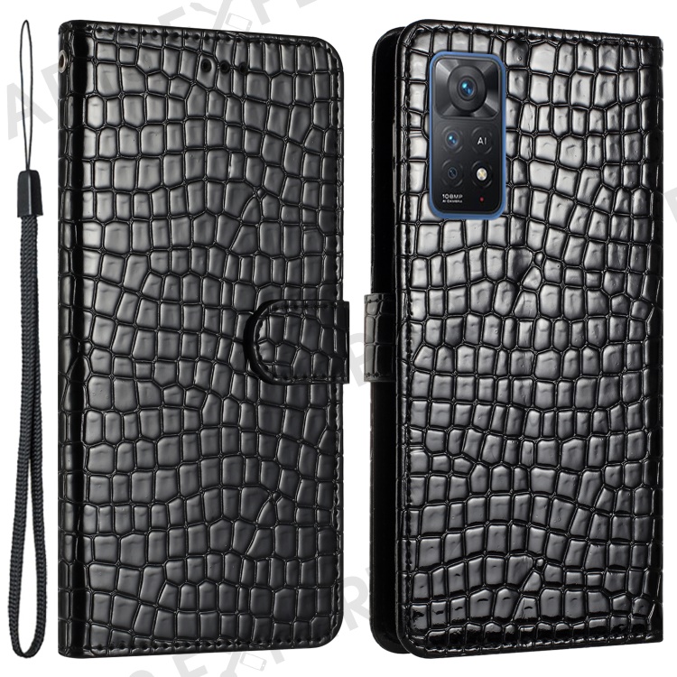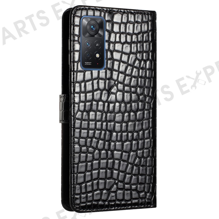 Leather Phone Case for Xiaomi Redmi Note 11 Pro 5G (Qualcomm) / Note 11 Pro 4G (MediaTek) / Note 12 Pro 4G , Crocodile Texture Stand Wallet Cover - Black