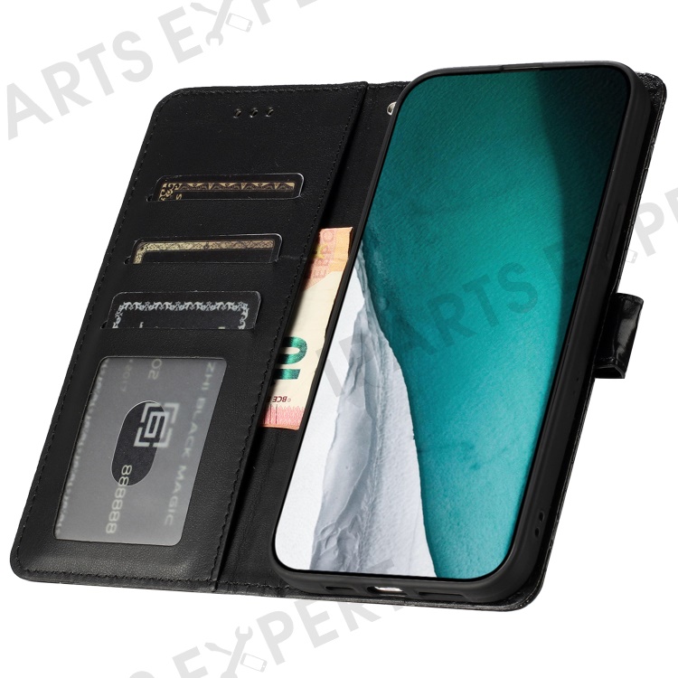 Inside features 3 card slots and a side pocket to conveniently carry your cards and money