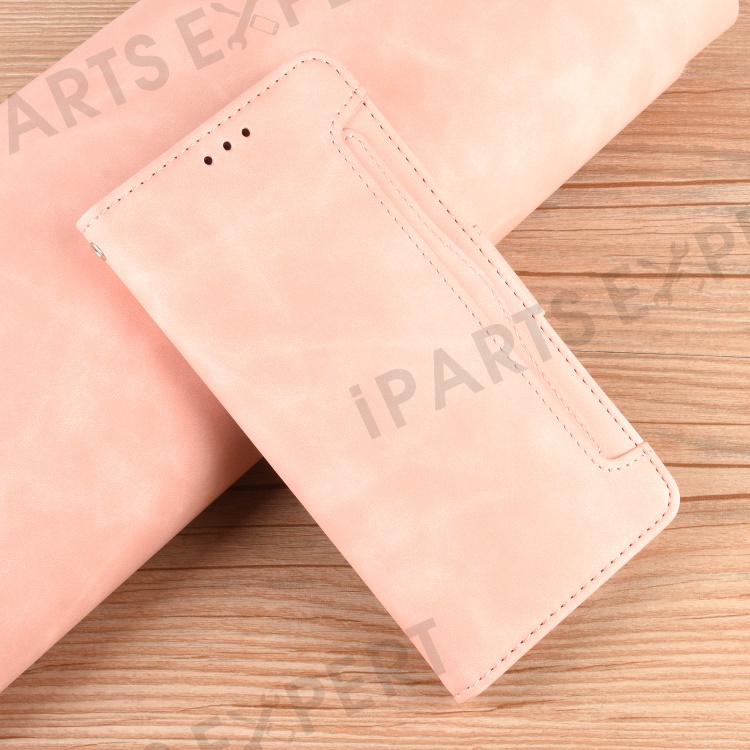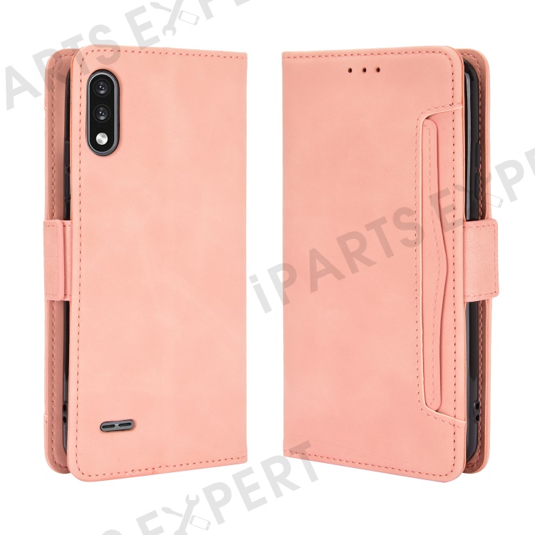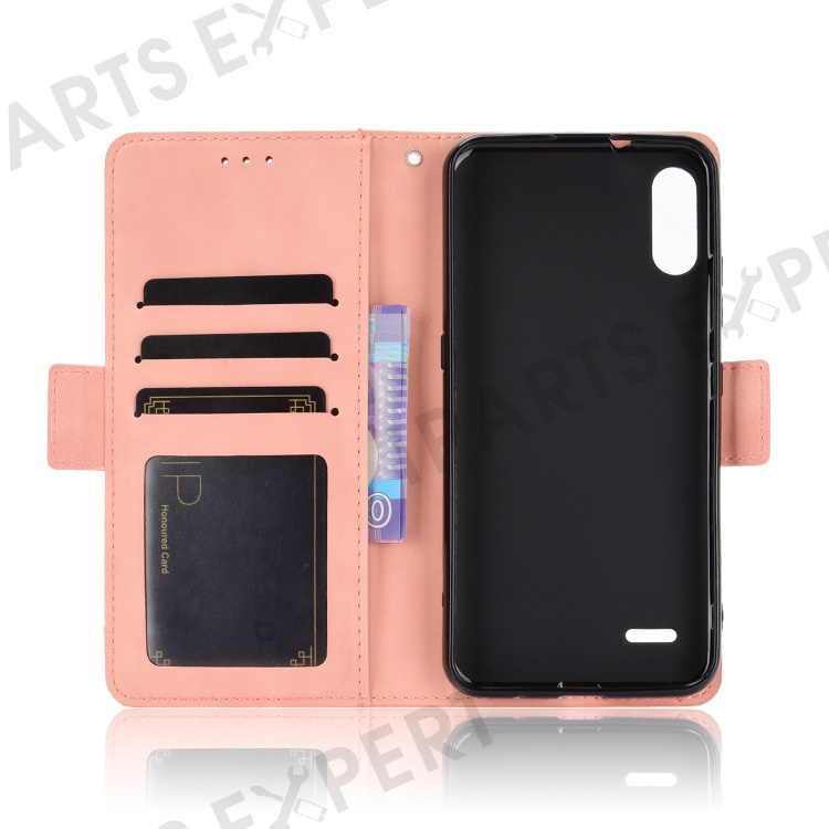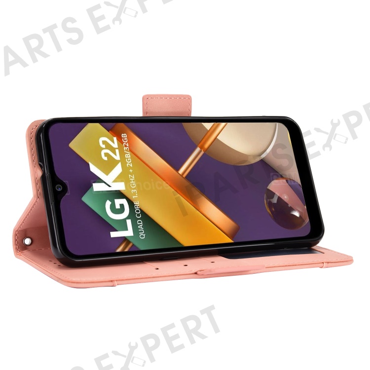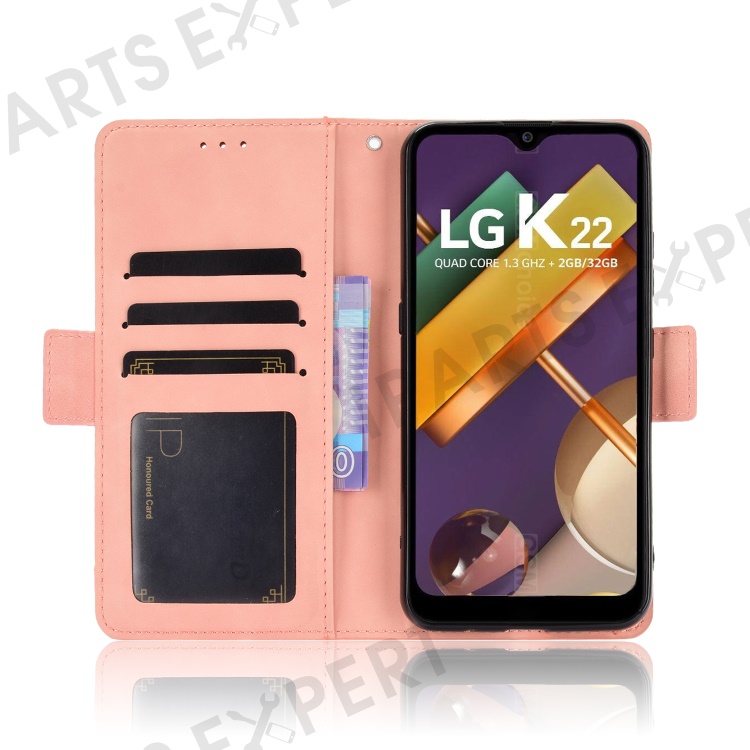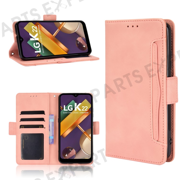 Leather Wallet Phone Cover Shell with Draw-Out Card Slots for LG K22 - Pink