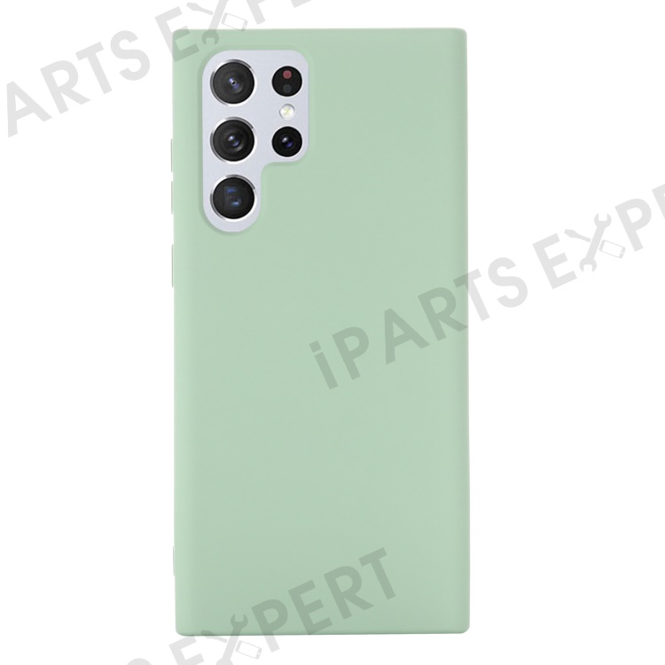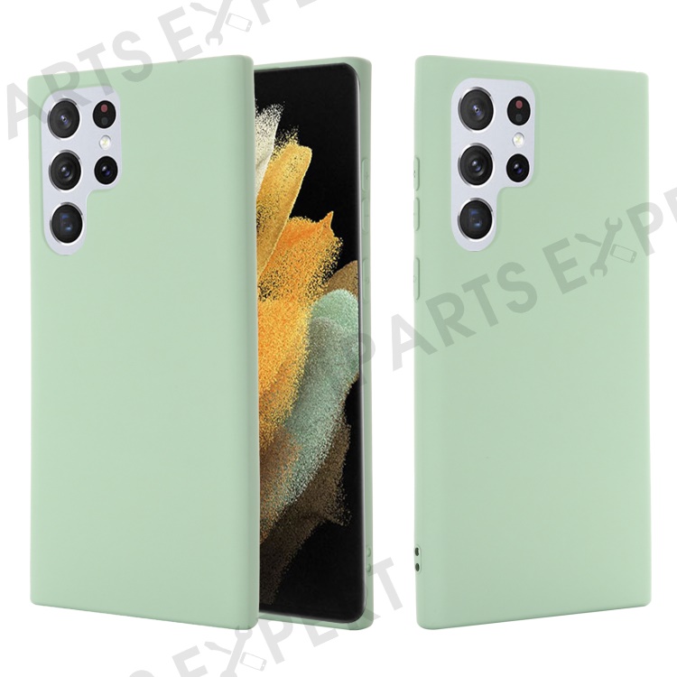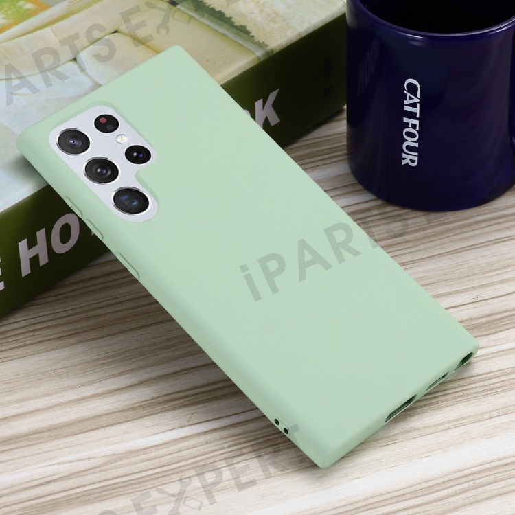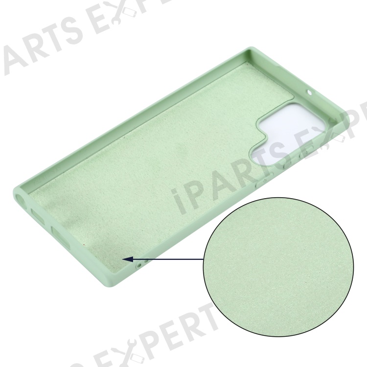 Liquid Silicone Microfiber Lining Mobile Phone Back Case Cover with Strap for Samsung Galaxy S22 Ultra 5G - Green