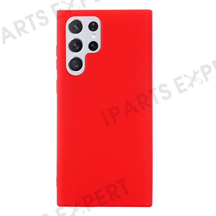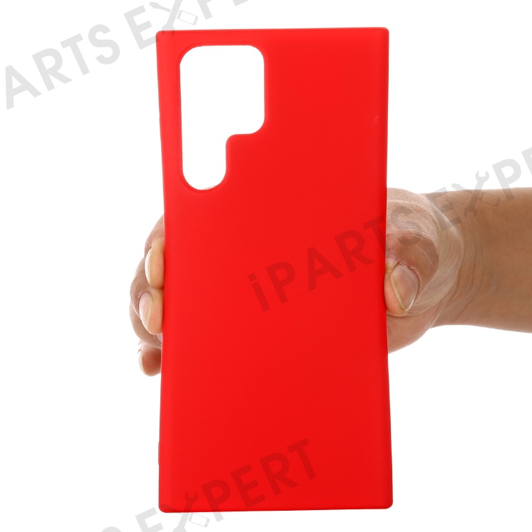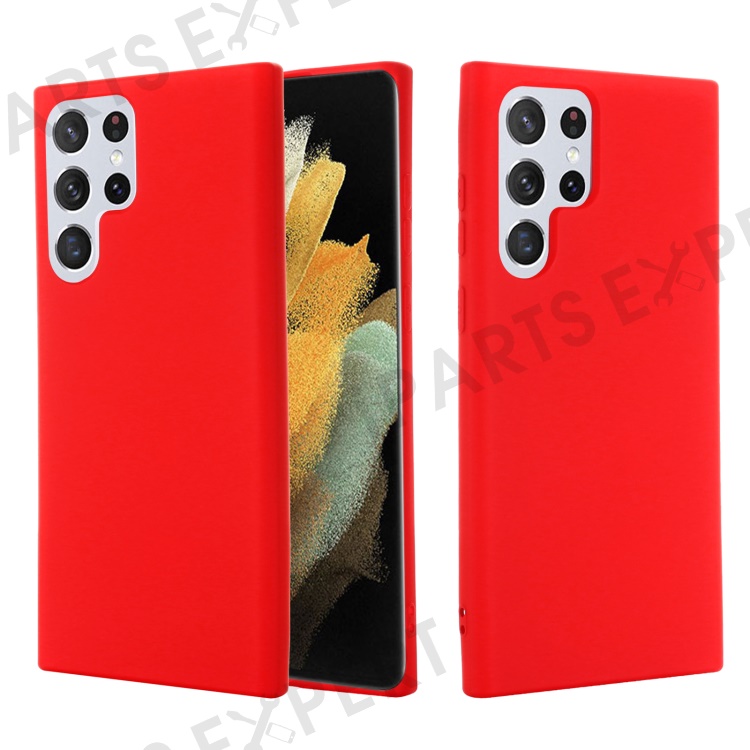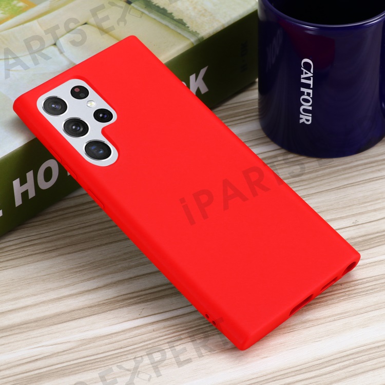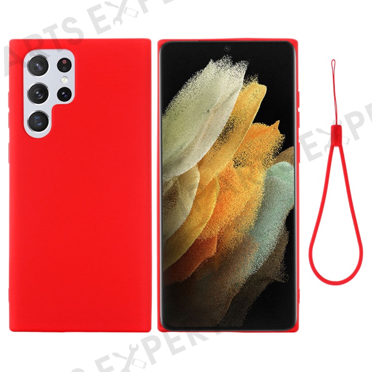 Liquid Silicone Microfiber Lining Mobile Phone Back Case Cover with Strap for Samsung Galaxy S22 Ultra 5G - Red