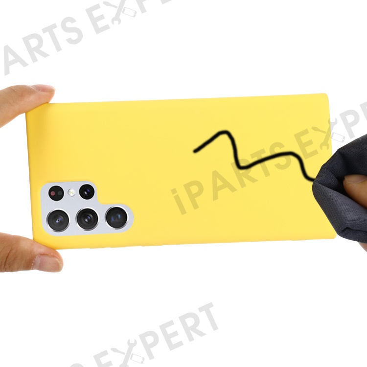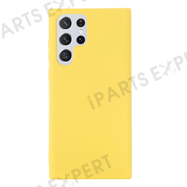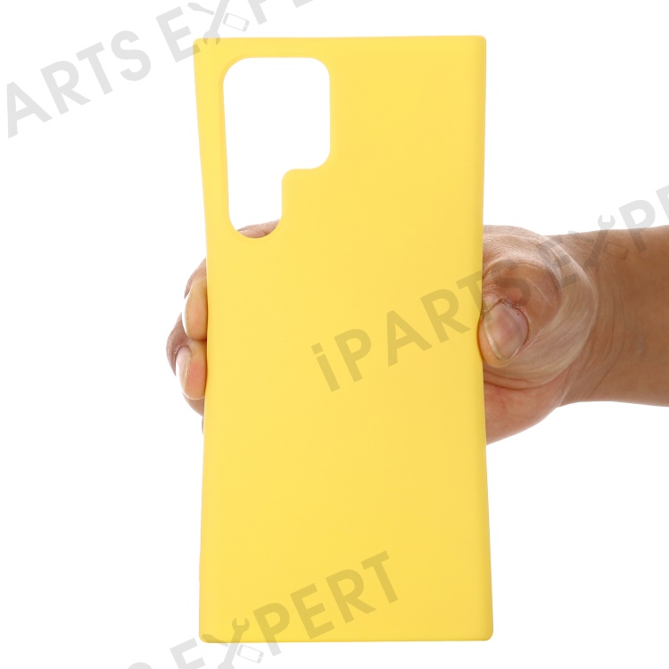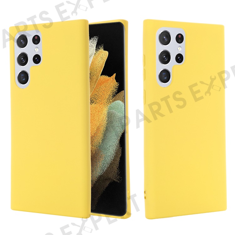 Liquid Silicone Microfiber Lining Mobile Phone Back Case Cover with Strap for Samsung Galaxy S22 Ultra 5G - Yellow