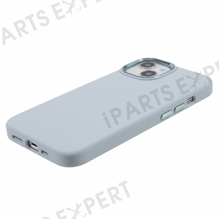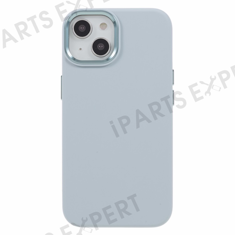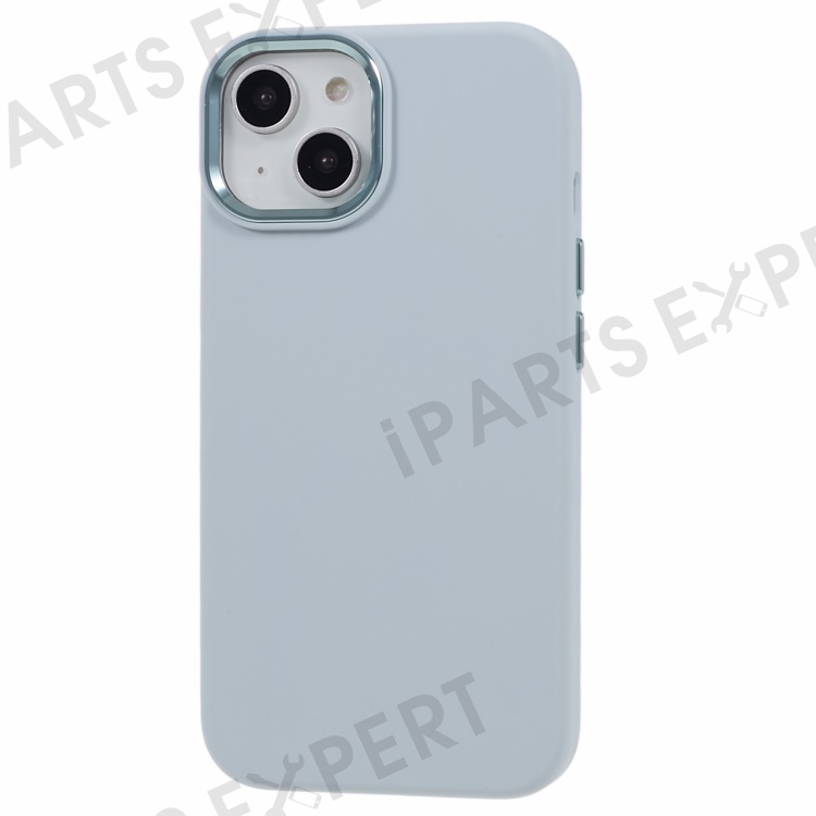Liquid Silicone+PC Phone Case for iPhone 15 , Aluminum Alloy Camera Frame Back Cover - Blue Grey