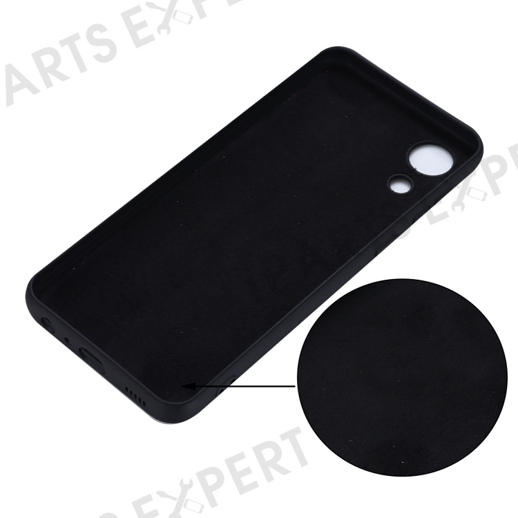 Liquid Silicone Smooth Soft Microfiber Lining Cushion Phone Case with Strap for Samsung Galaxy A03 Core - Black