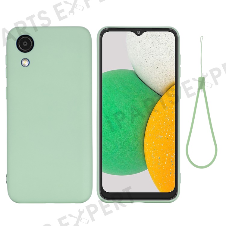 Liquid Silicone Smooth Soft Microfiber Lining Cushion Phone Case with Strap for Samsung Galaxy A03 Core - Green