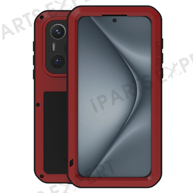 LOVE MEI For Huawei Pura 70 Pro / Pura 70 Pro+ Case Metal+Silicone Phone Cover with Screen Film - Red