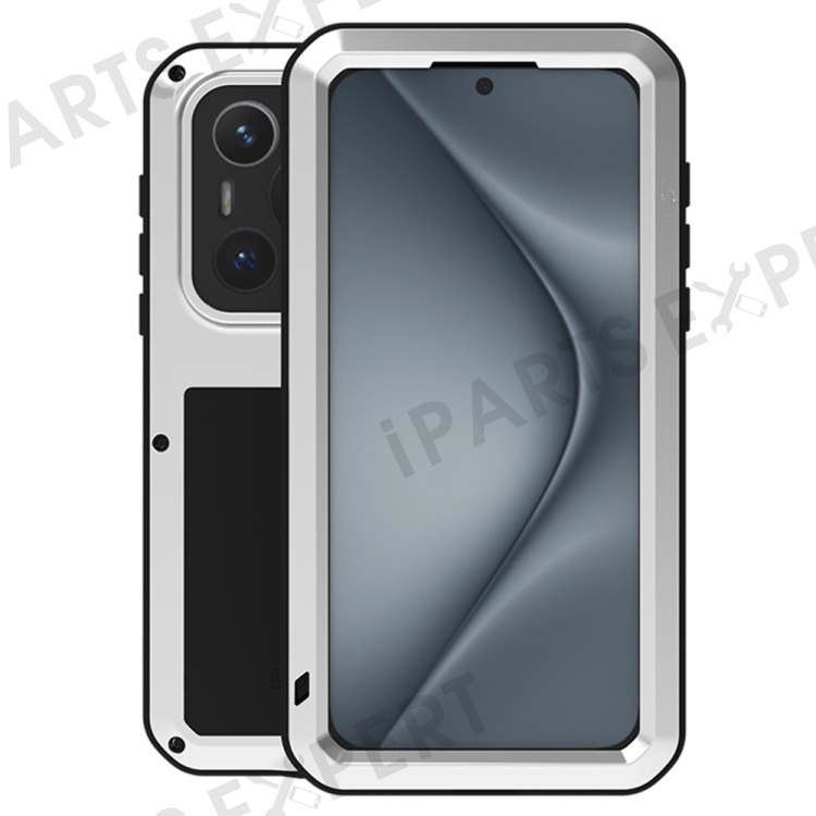 LOVE MEI For Huawei Pura 70 Pro / Pura 70 Pro+ Case Metal+Silicone Phone Cover with Screen Film - Silver