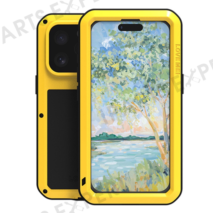 LOVE MEI For iPhone 16 Pro Case with Tempered Glass Film Metal+Silicone Phone Cover - Yellow