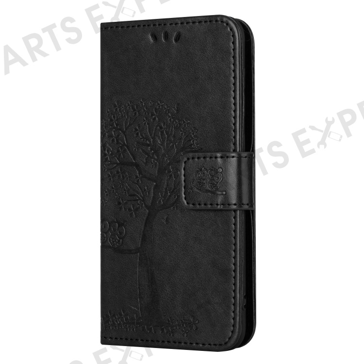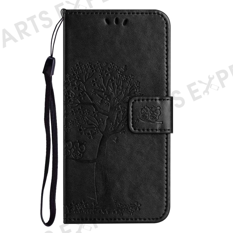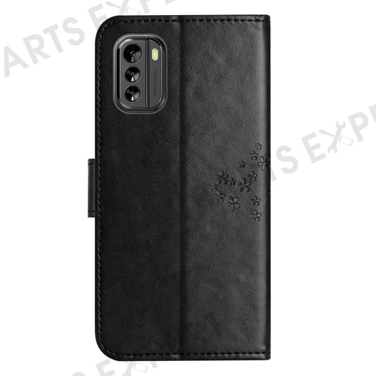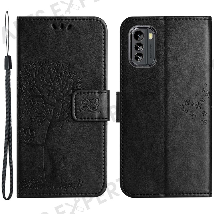 Magnetic Clasp Phone Cover for Nokia G60 5G, PU Leather Imprinted Owl Tree Pattern Shockproof Case with Wallet Stand - Black