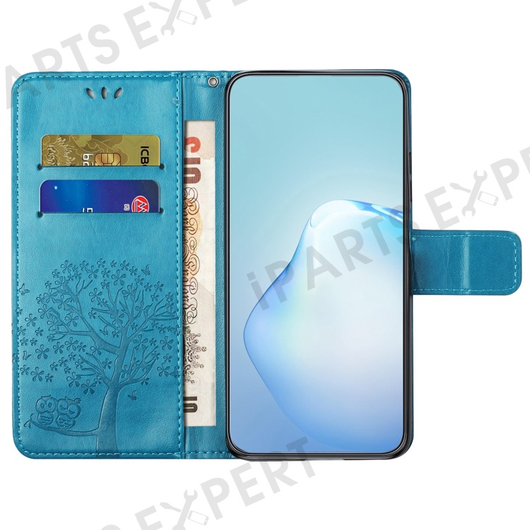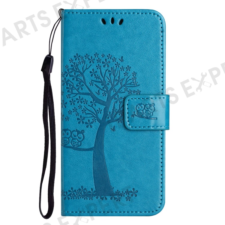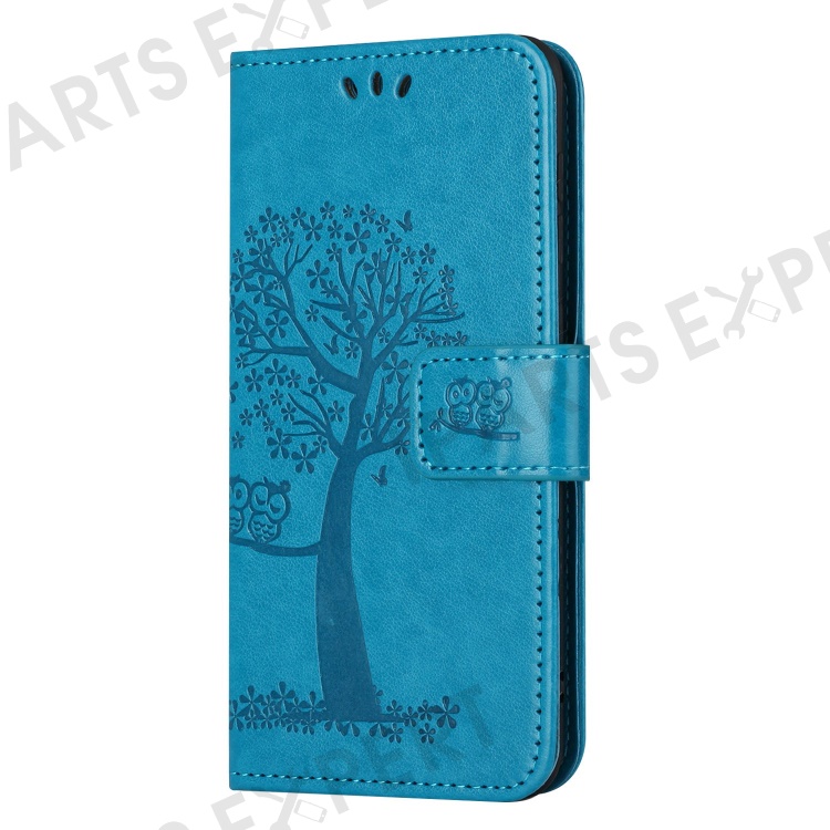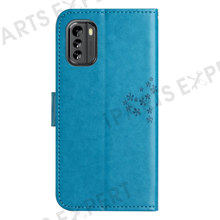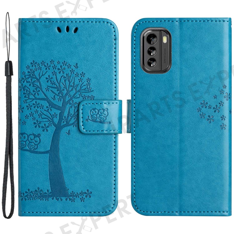 Magnetic Clasp Phone Cover for Nokia G60 5G, PU Leather Imprinted Owl Tree Pattern Shockproof Case with Wallet Stand - Blue