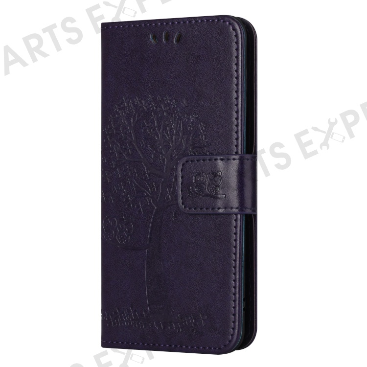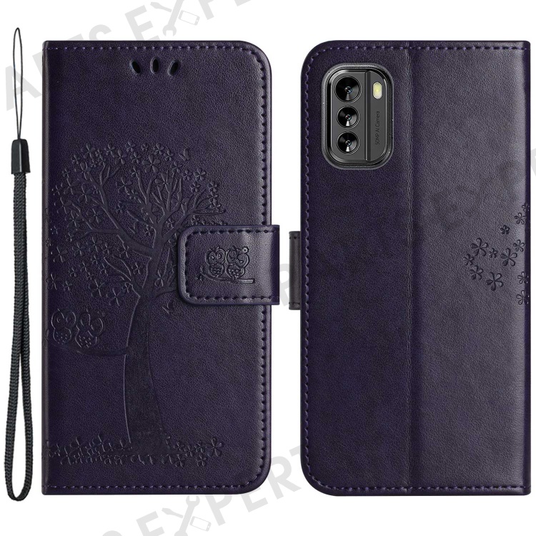 Magnetic Clasp Phone Cover for Nokia G60 5G, PU Leather Imprinted Owl Tree Pattern Shockproof Case with Wallet Stand - Dark Purple