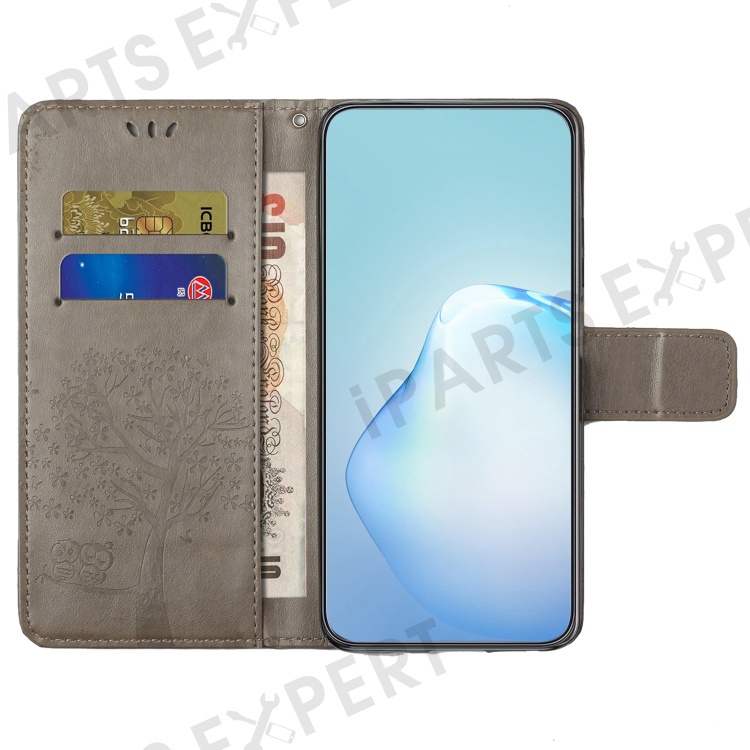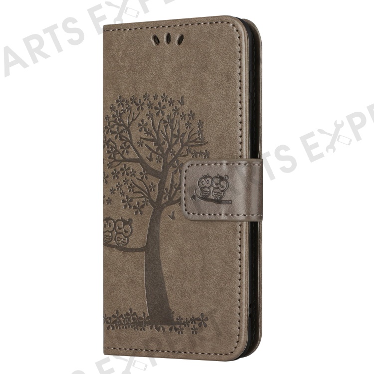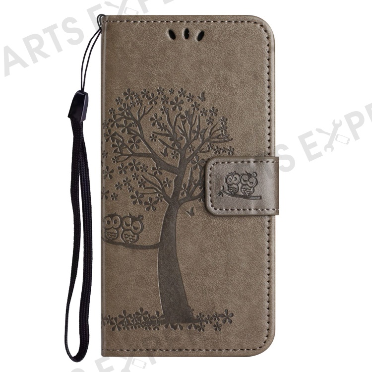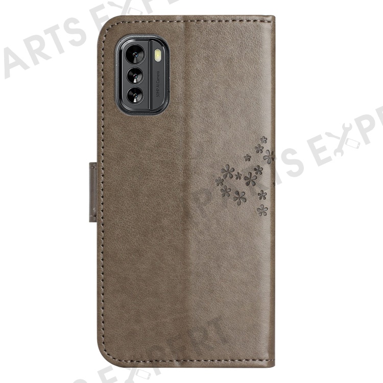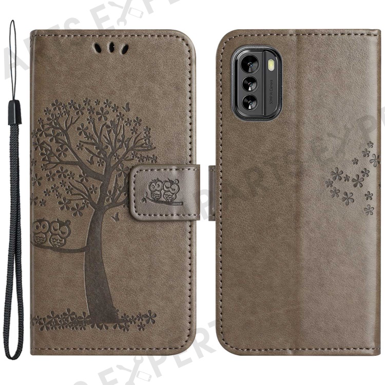 Magnetic Clasp Phone Cover for Nokia G60 5G, PU Leather Imprinted Owl Tree Pattern Shockproof Case with Wallet Stand - Grey