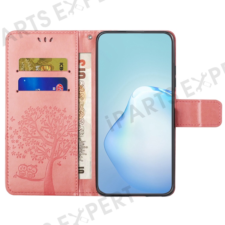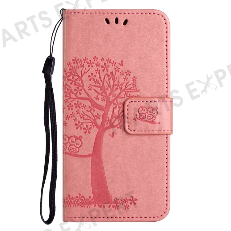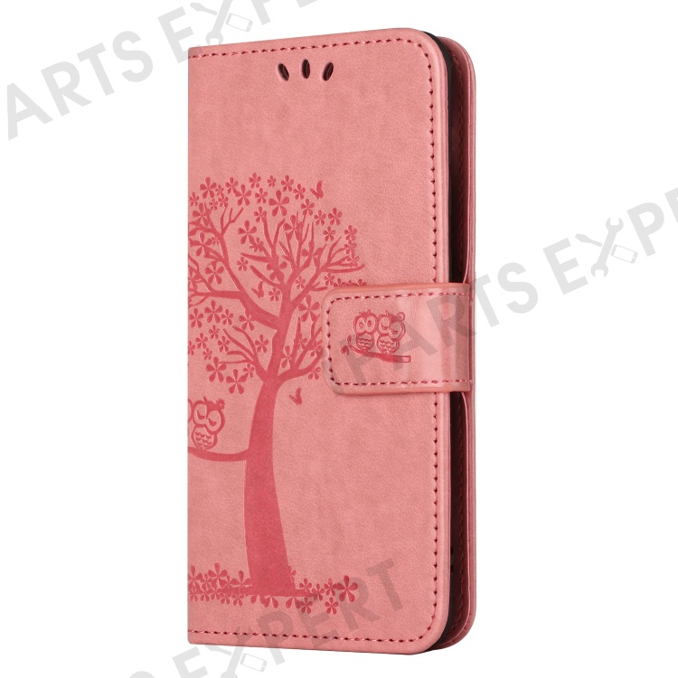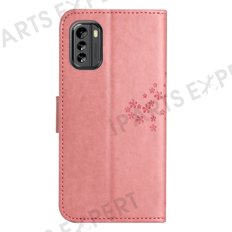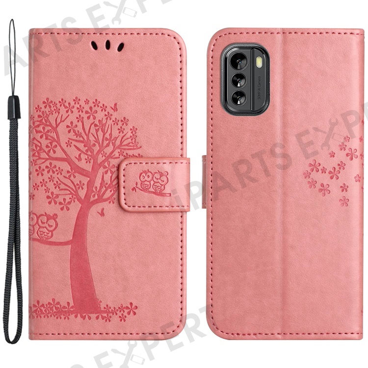 Magnetic Clasp Phone Cover for Nokia G60 5G, PU Leather Imprinted Owl Tree Pattern Shockproof Case with Wallet Stand - Pink