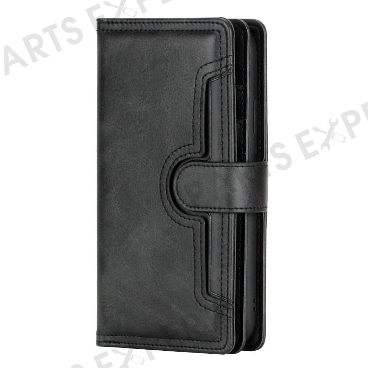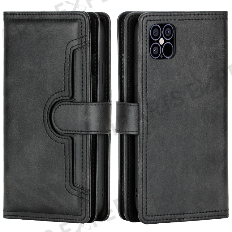 Magnetic Clasp Split Leather Phone Stand Case Protector with Multiple Card Slots for iPhone 13 Pro Max 6.7 inch - Black