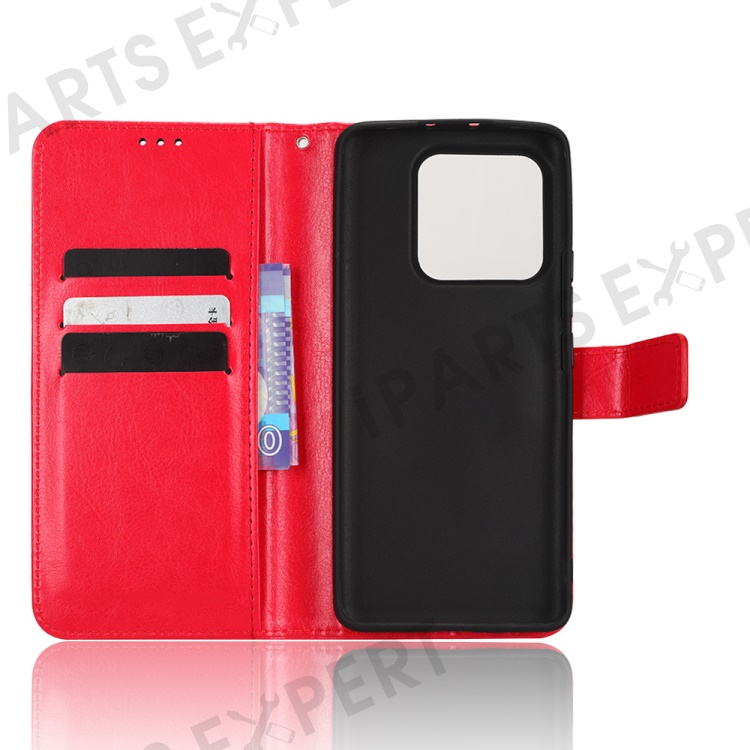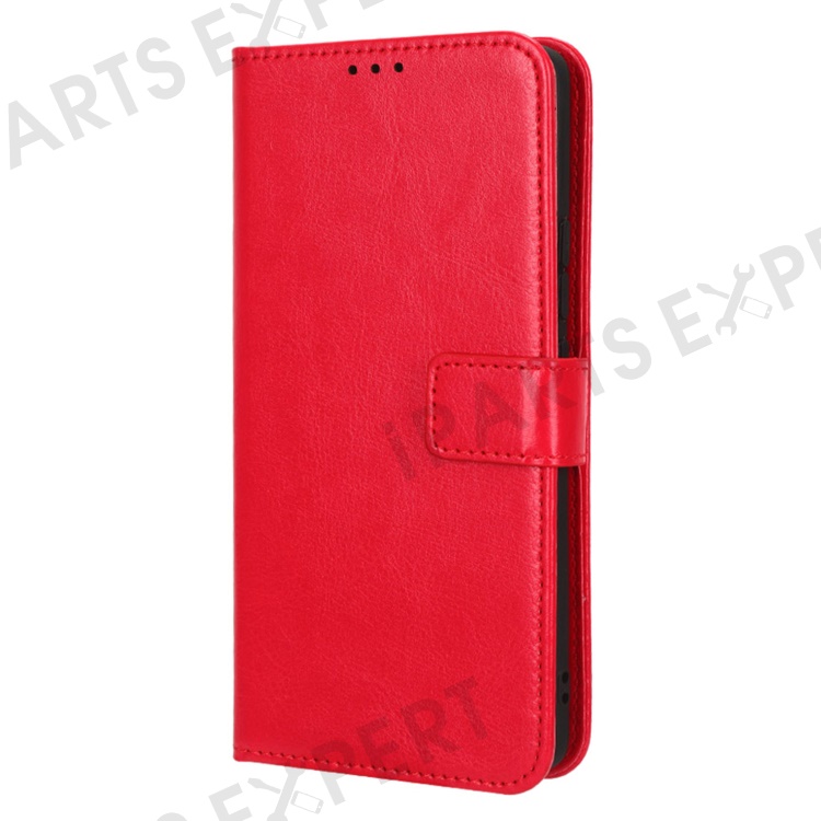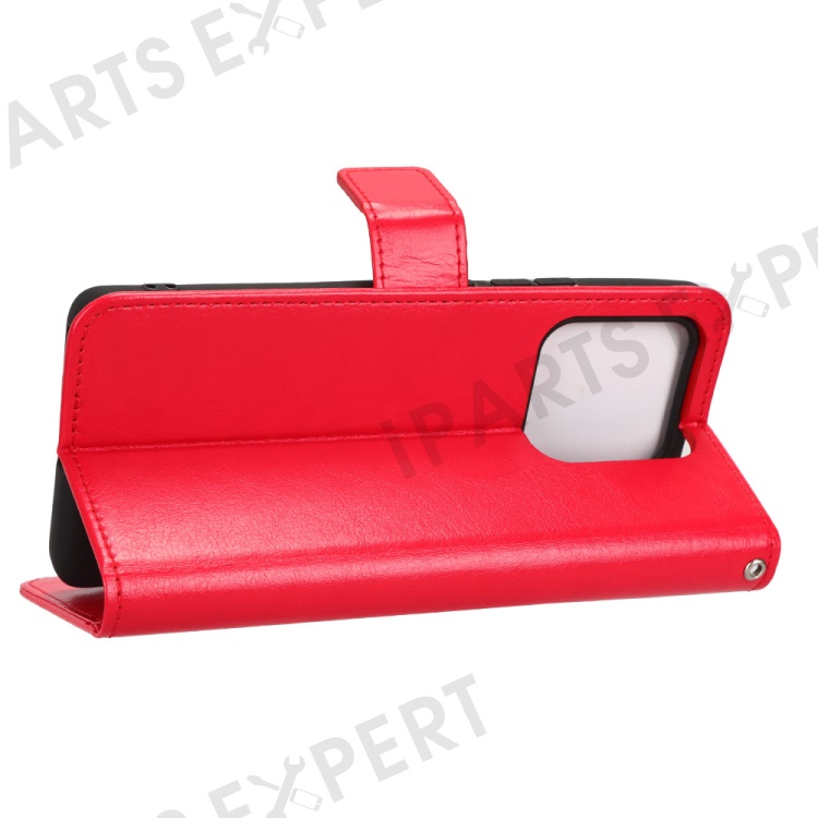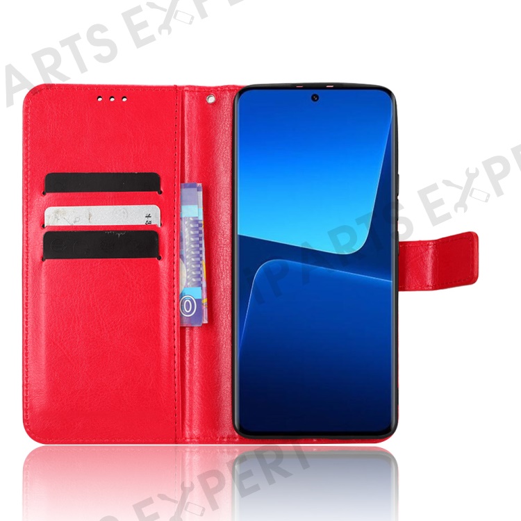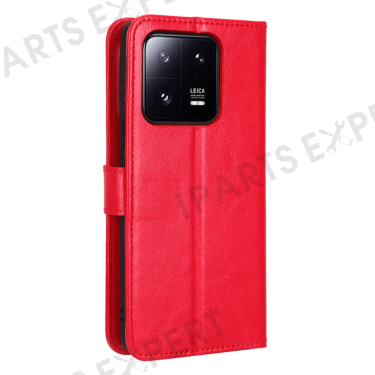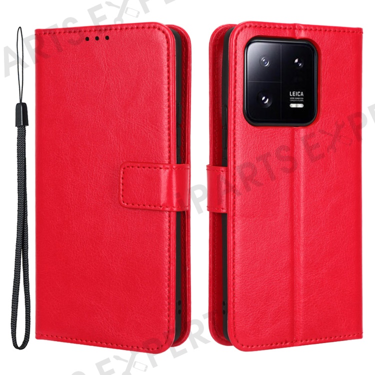 Magnetic Crazy Horse Texture Phone Case For Xiaomi 13 5G, Wallet Stand PU Leather Anti-drop Full Protection Mobile Phone Cover with Strap - Red