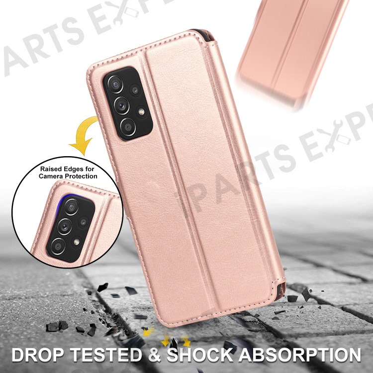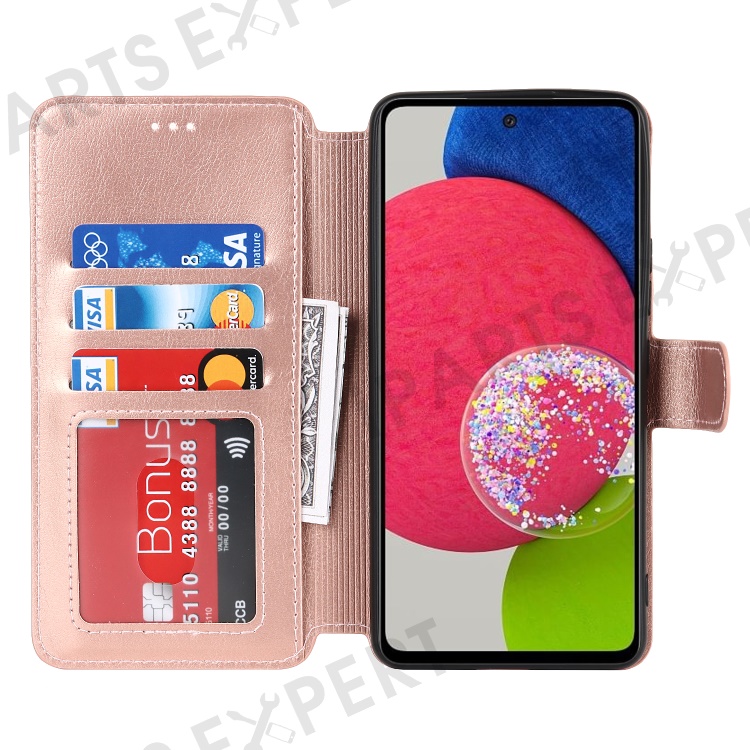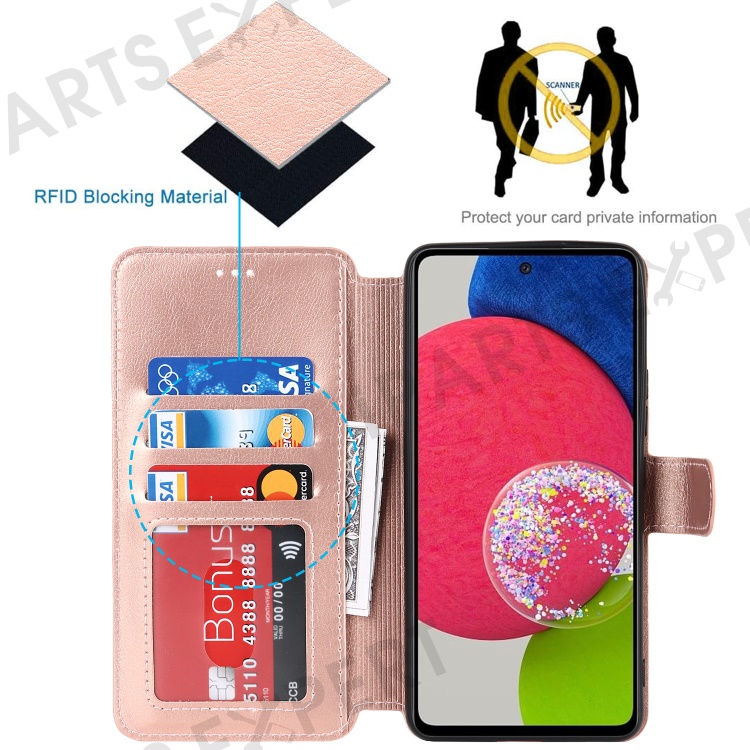 Magnetic Retro Matte PU Leather Stand Flip Cover Shockproof TPU Interior RFID Blocking Wallet Folio Case for Samsung Galaxy A53 5G - Rose Gold