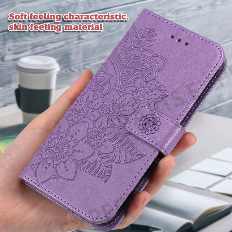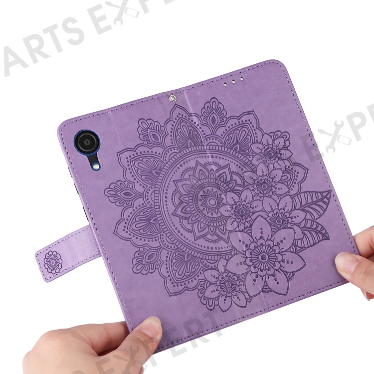 Mandala Flower Imprinted Anti-drop Shockproof Wallet Stand Leather Phone Case for Samsung Galaxy A03 Core - Purple