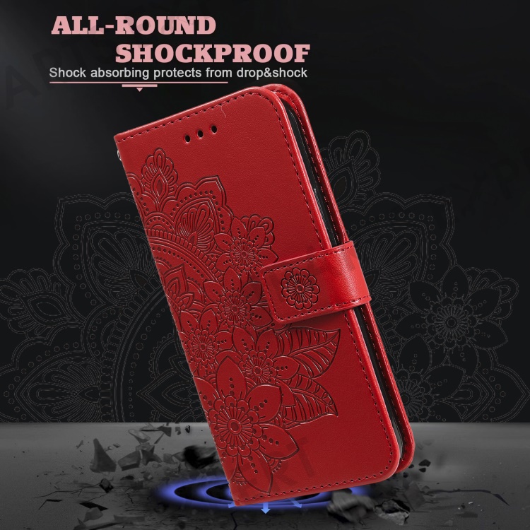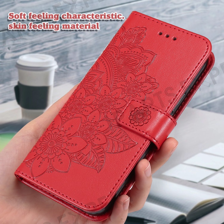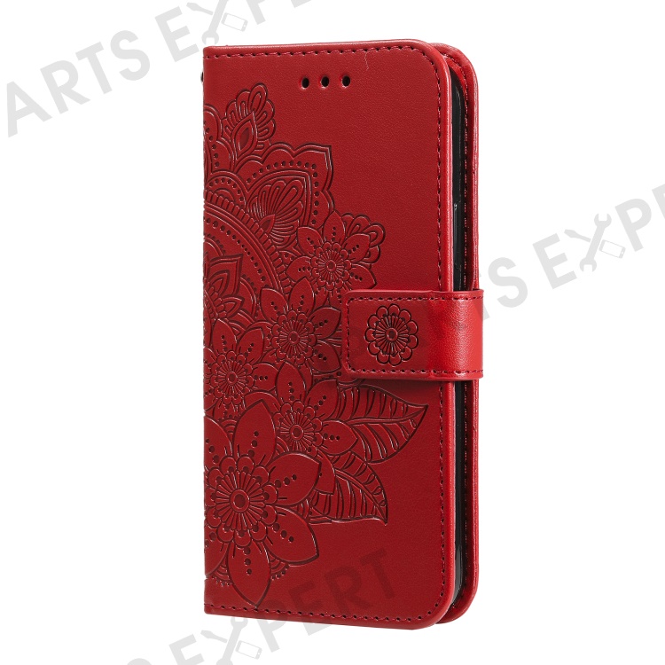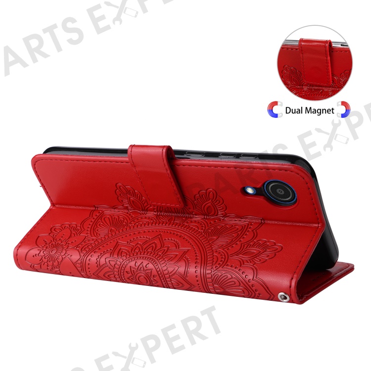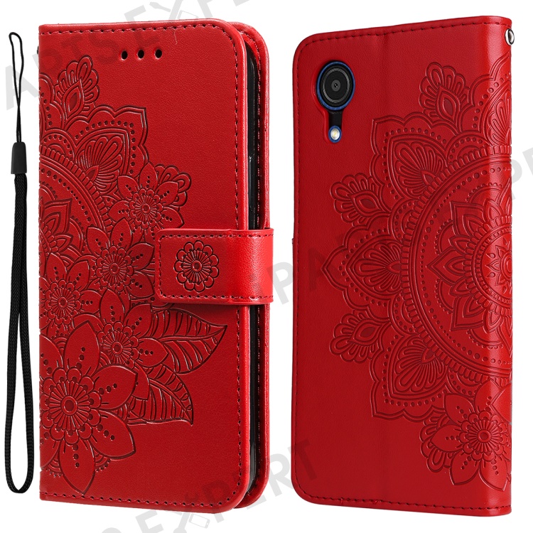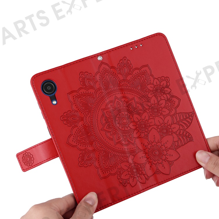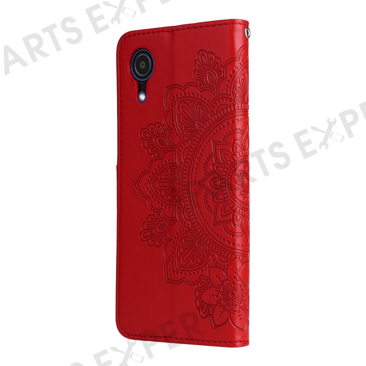 Mandala Flower Imprinted Anti-drop Shockproof Wallet Stand Leather Phone Case for Samsung Galaxy A03 Core - Red