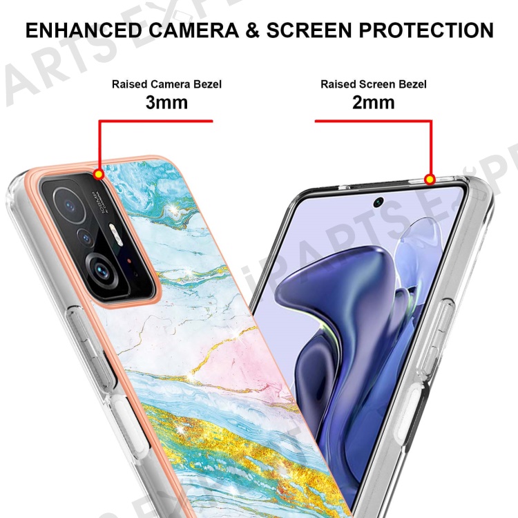 Marble Design Drop-proof IMD IML Electroplating Flexible TPU Protective Phone Cover Case for Xiaomi 11T/11T Pro - Green 004