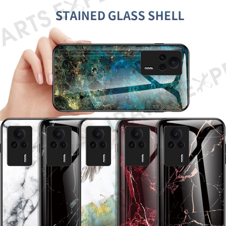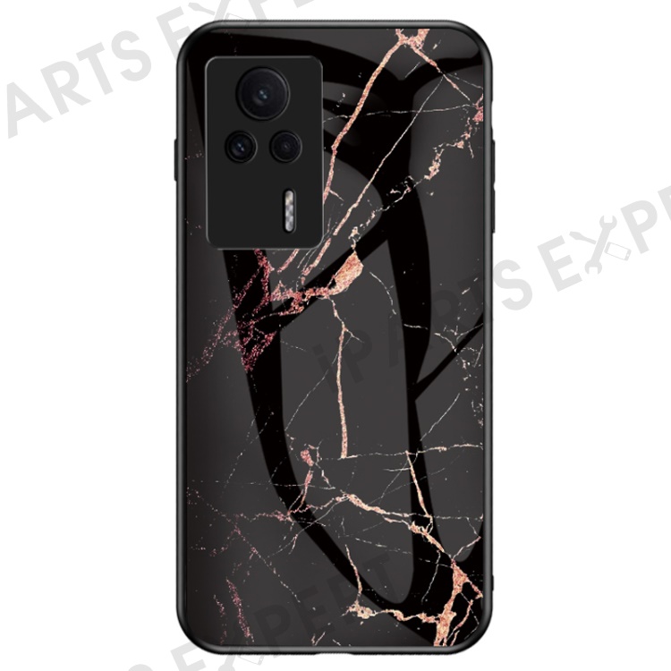 Marble Pattern Phone Case for Xiaomi Redmi K60E 5G, Tempered Glass+PC +TPU Shockproof Cover - Gold Black Marble