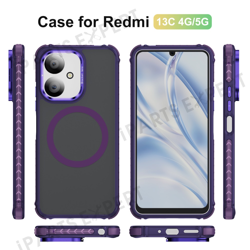 Matte Phone Cover for Xiaomi Redmi 13C 5G / 13C 4G / 13R 5G / Poco M6 5G Magnetic Case with Lens Kickstand - Purple