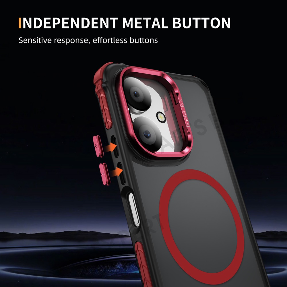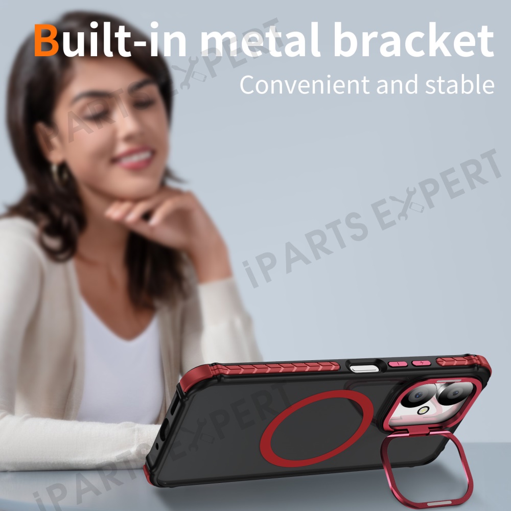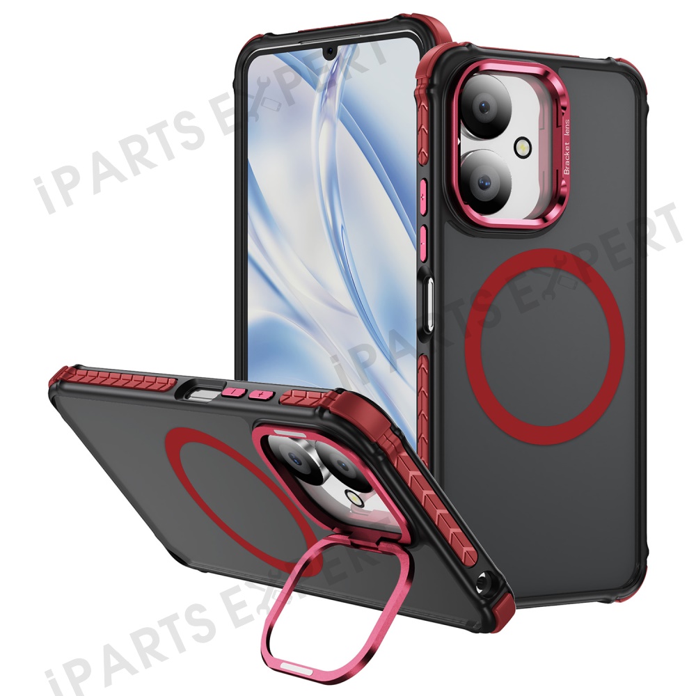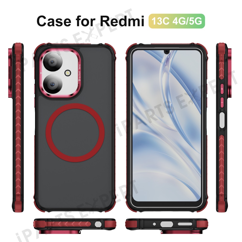 Matte Phone Cover for Xiaomi Redmi 13C 5G / 13C 4G / 13R 5G / Poco M6 5G Magnetic Case with Lens Kickstand - Red