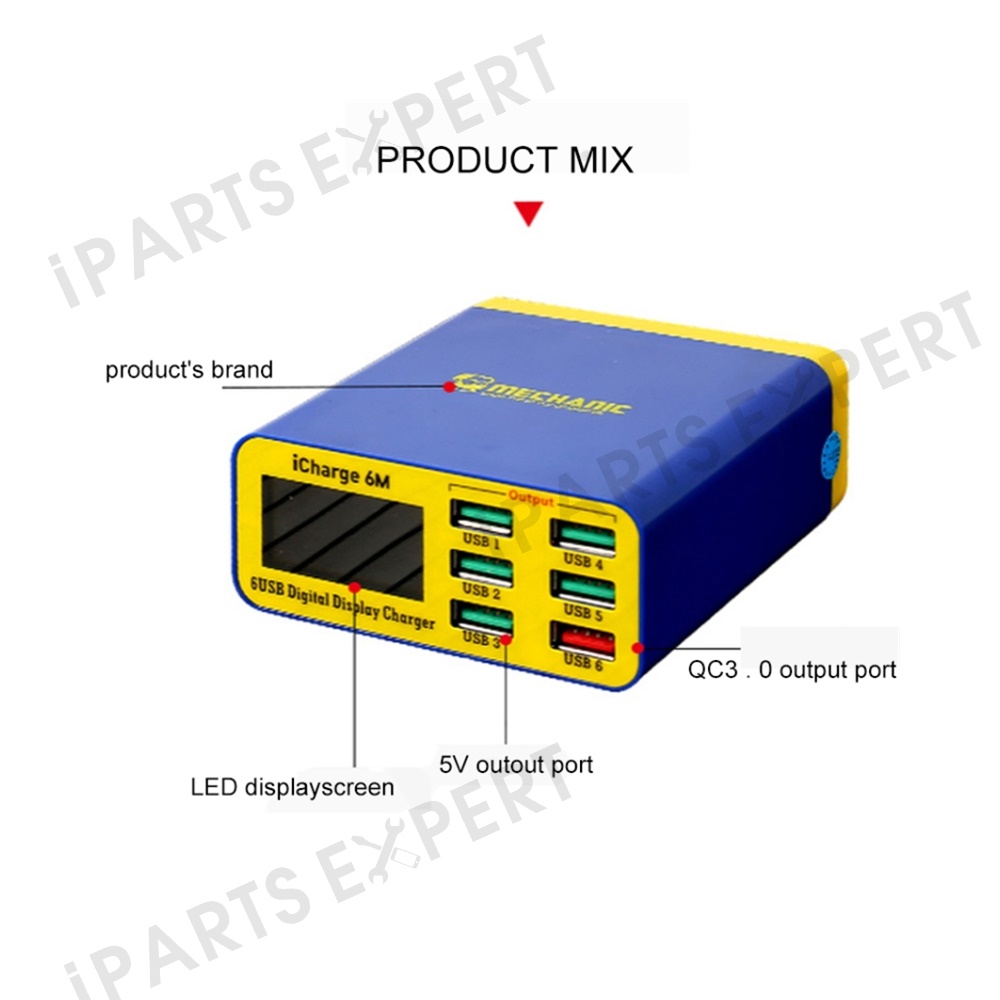MECHANIC 6M QC 3.0 USB Smart Charger Fast Charging Station with LCD Display for Smartphones / Tablets - US Plug