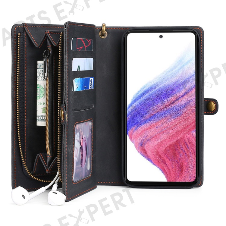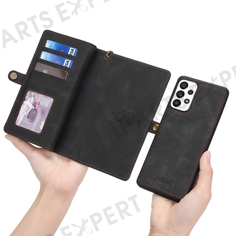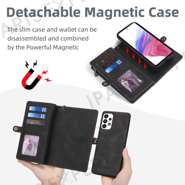 MEGSHI 017 Series Detachable Leather Case for Samsung Galaxy A73 5G , Magnetic Absorption Zipper Wallet with Wrist Strap - Black