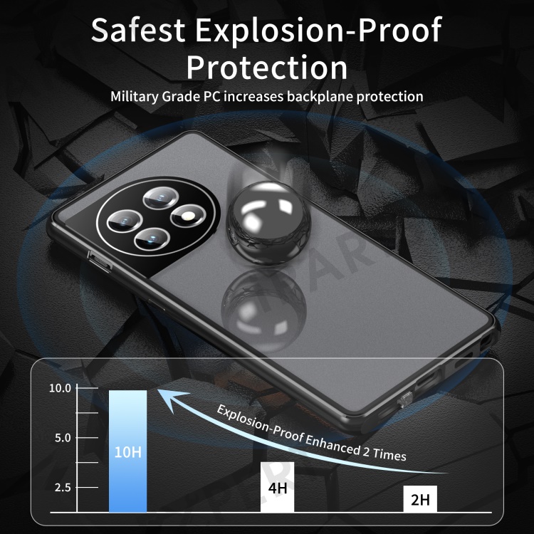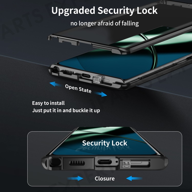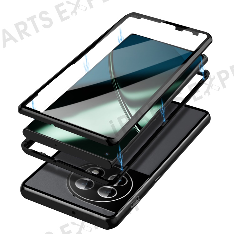 Metal Frame Case for OnePlus 11 5G Tempered Glass Phone Case Full Protection with Lock - Black