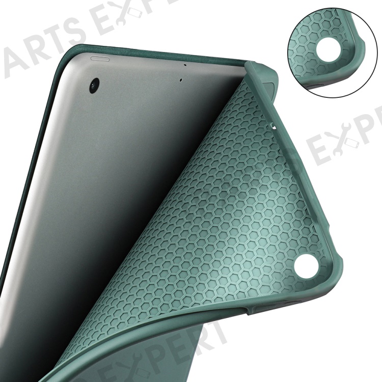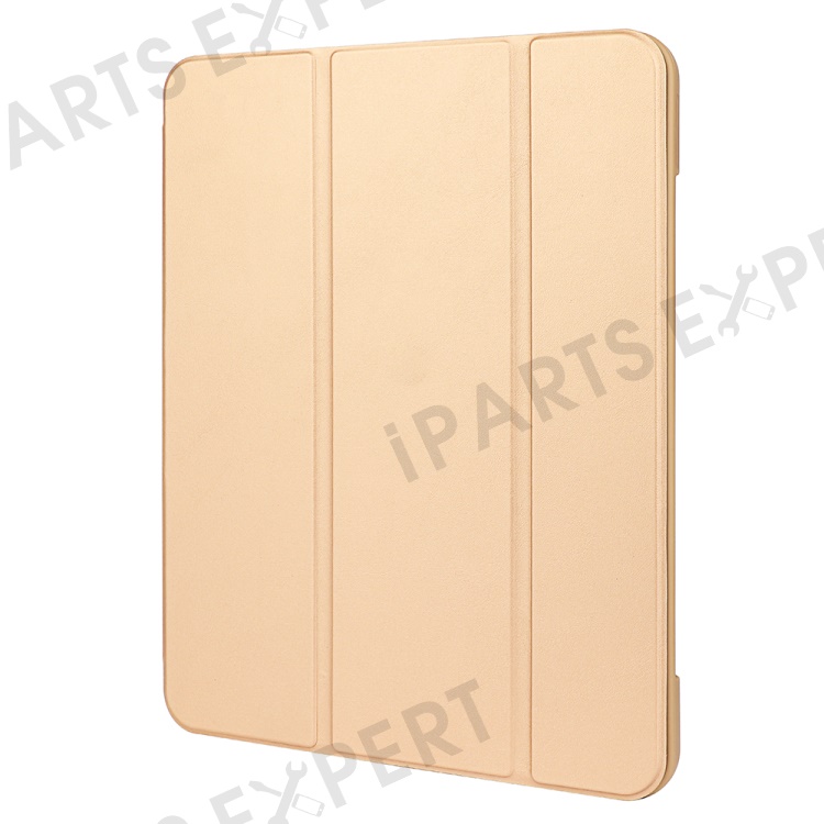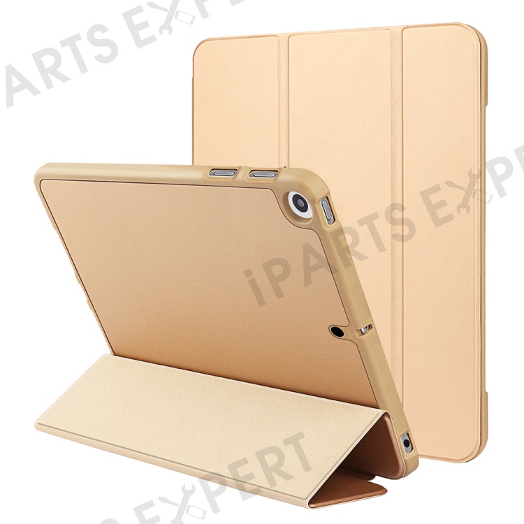 For iPad 10.2 (2020) / (2019) / (2021) Tri-fold Stand Protective Case Microfiber Leather + TPU + Silicone Auto Wake / Sleep Tablet Shell with Pen Slot - Gold