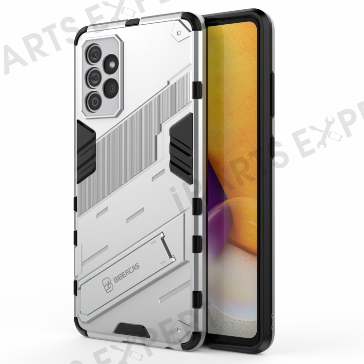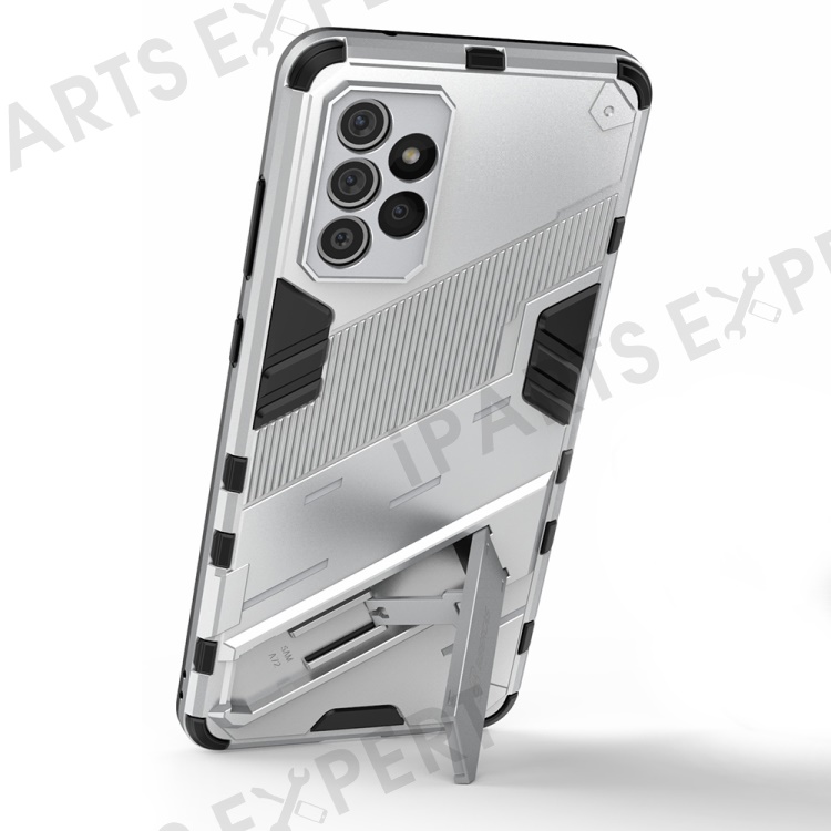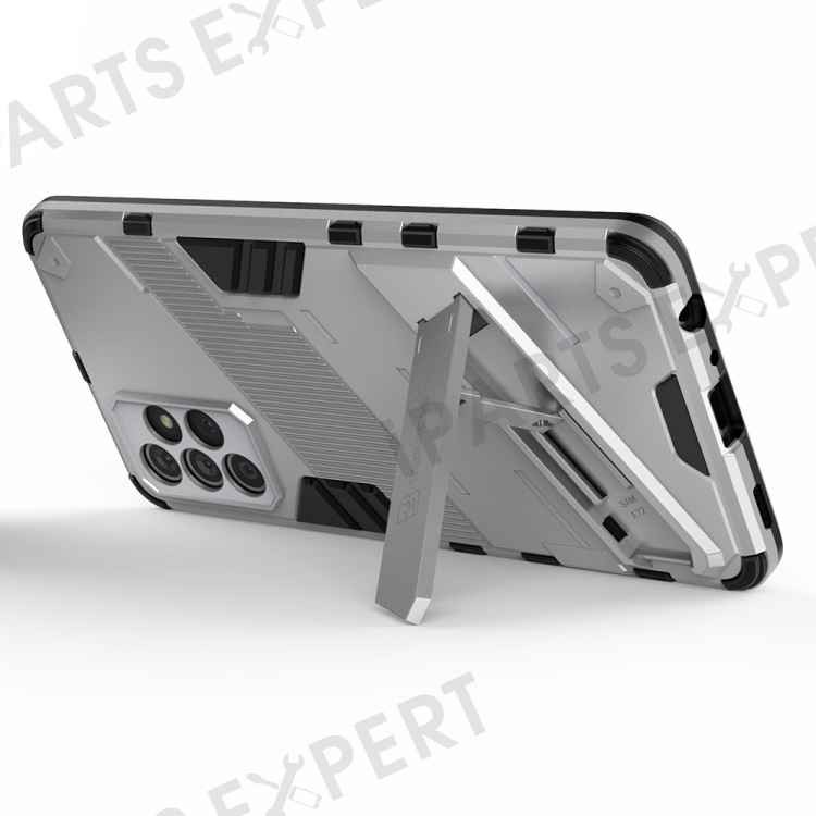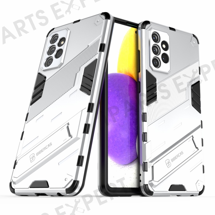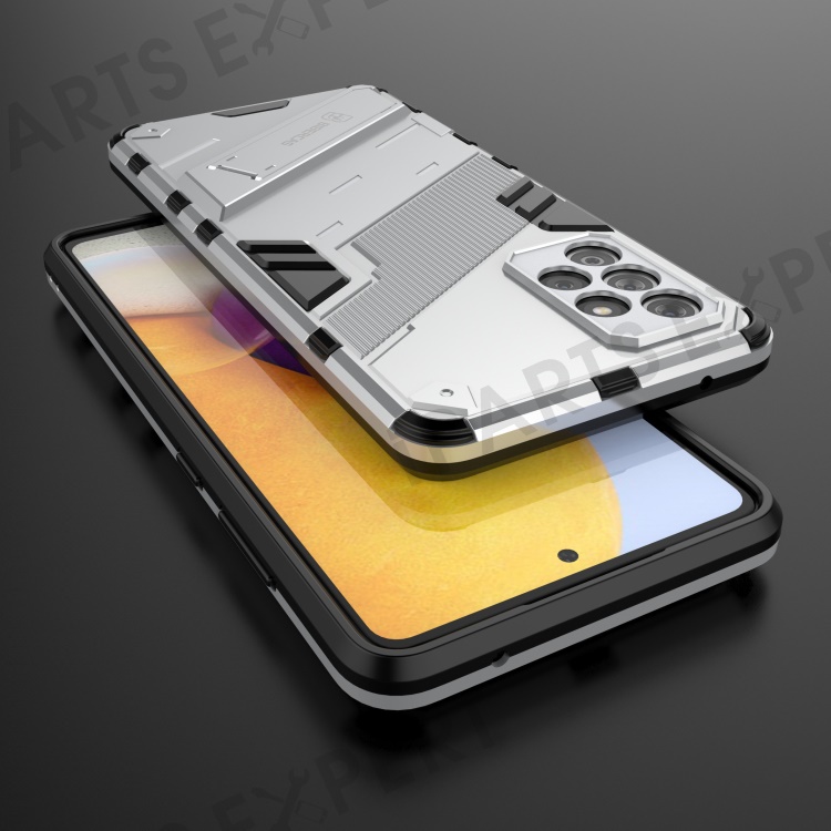 Military Grade Built-in Kickstand Dual Layer Case Hybrid Hard PC Soft TPU Shockproof Protective Cover for Samsung Galaxy A72 5G / 4G - White