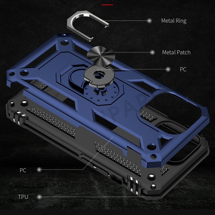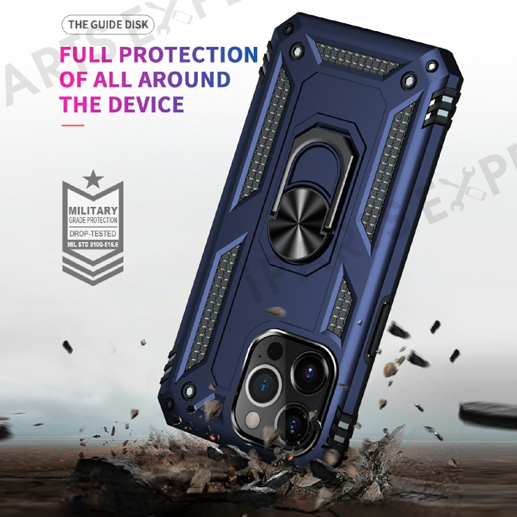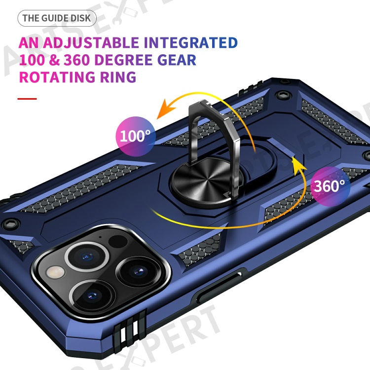 Military Grade PC TPU Shockproof Protection Case for iPhone 13 Pro Max 6.7 inch with Car Mount Rotary Ring Kickstand - Blue