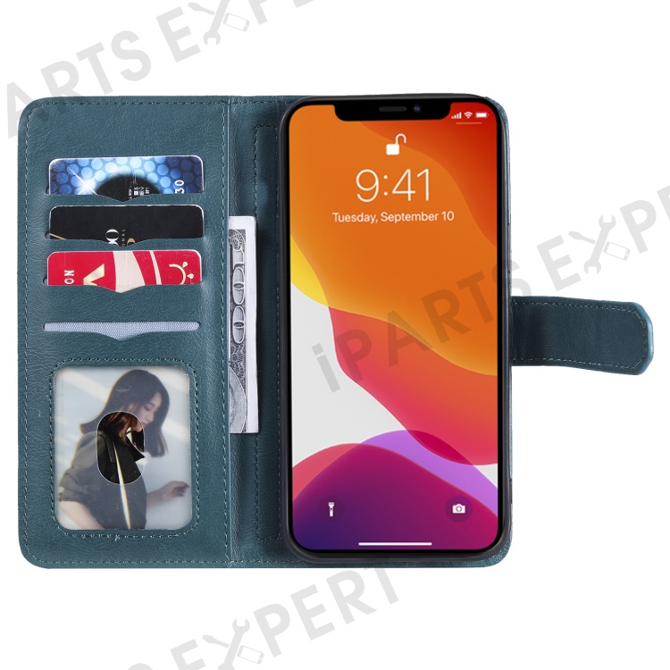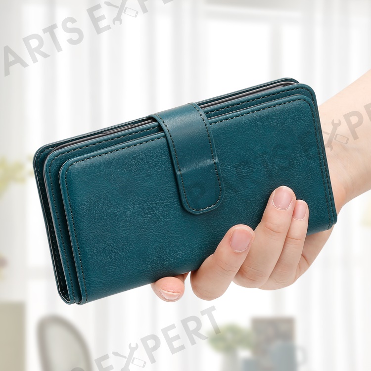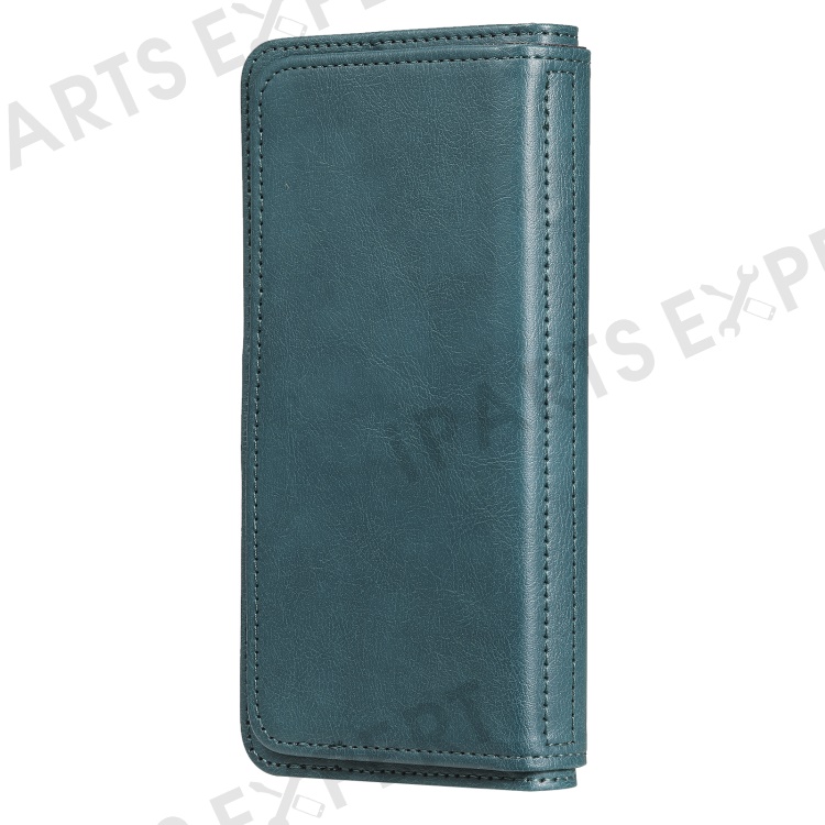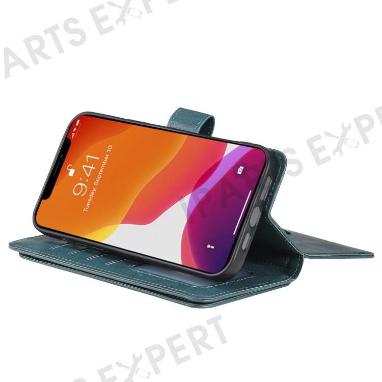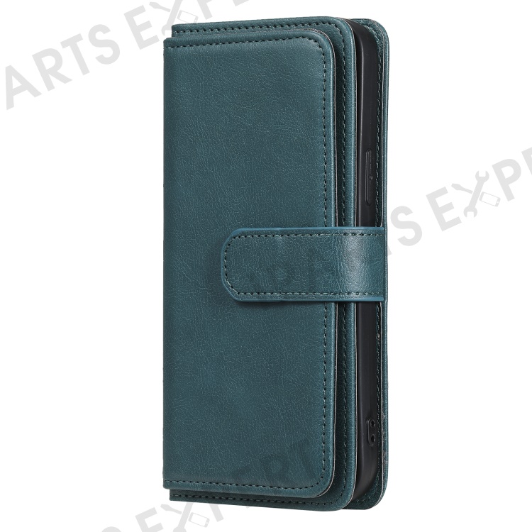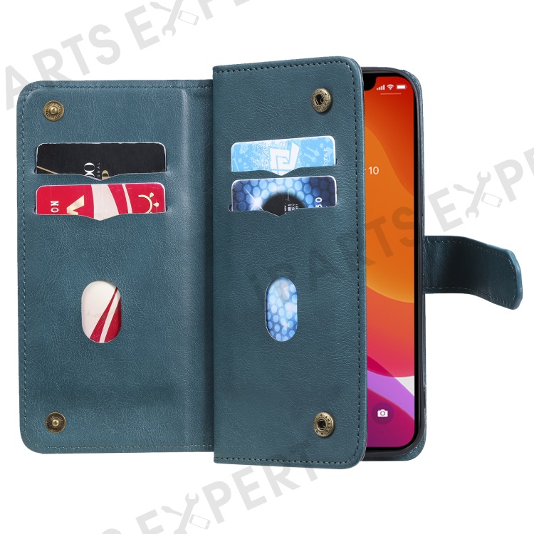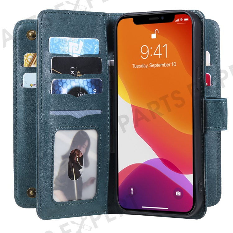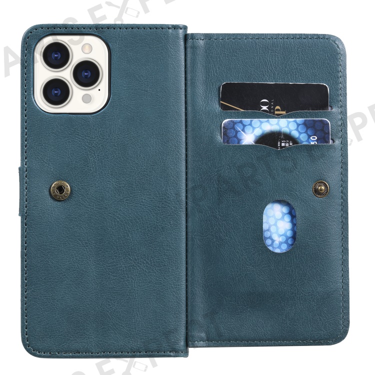 For iPhone 13 Pro Max Leather Case with 10 Card Holder Phone Cover Stand - Dark Green