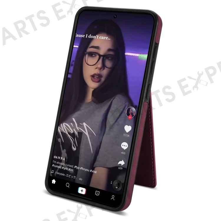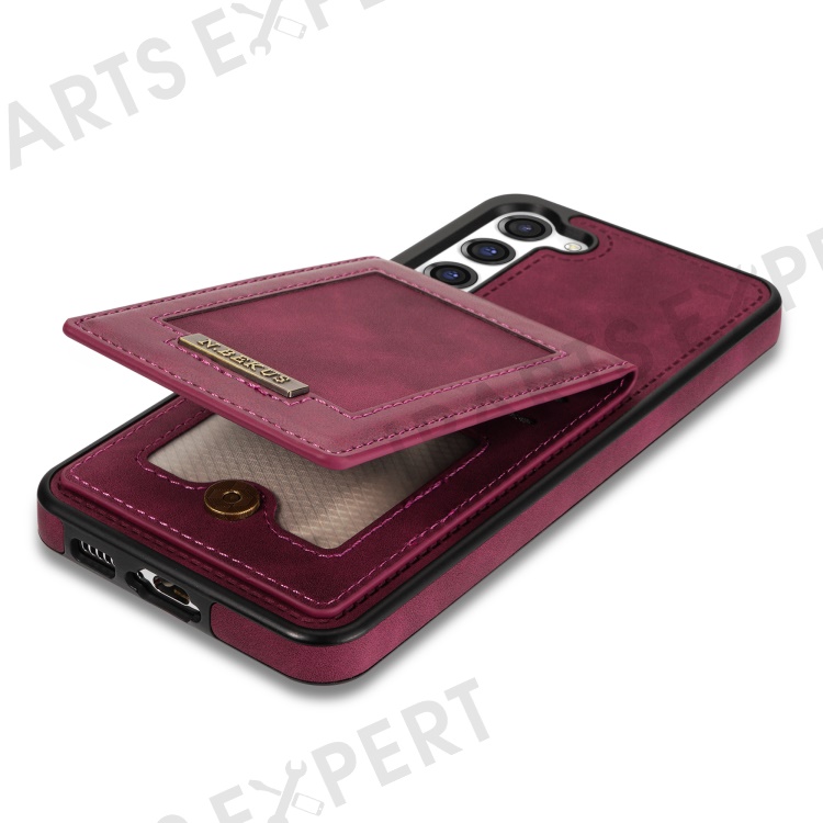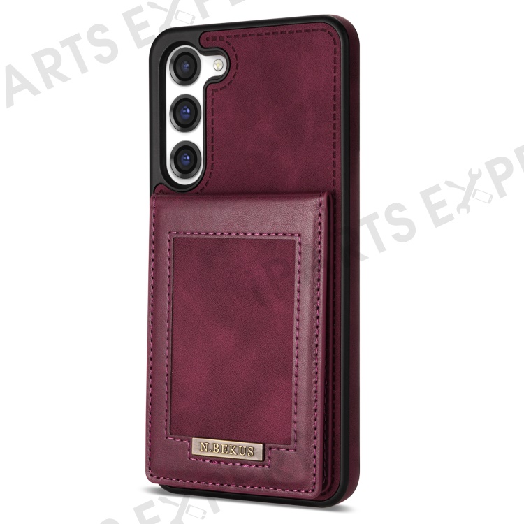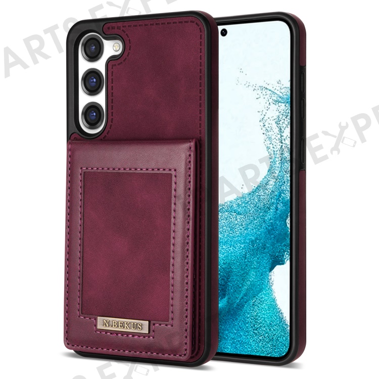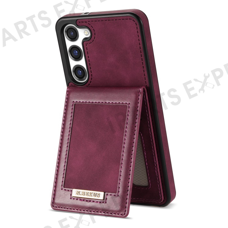 N.BEKUS For Samsung Galaxy S24 Kickstand Card Slots Case RFID Blocking Leather Back Cover - Wine Red