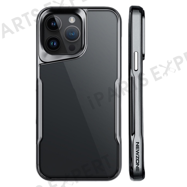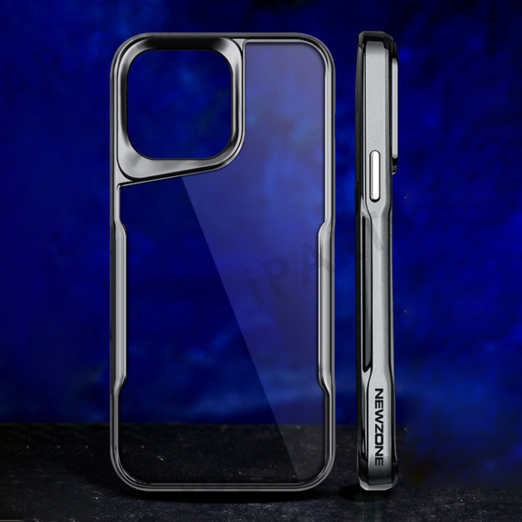 NEWZONE For iPhone 14 Pro Max Cell Phone Case Clear TPU+Acrylic Drop-proof Cover - Titanium Grey