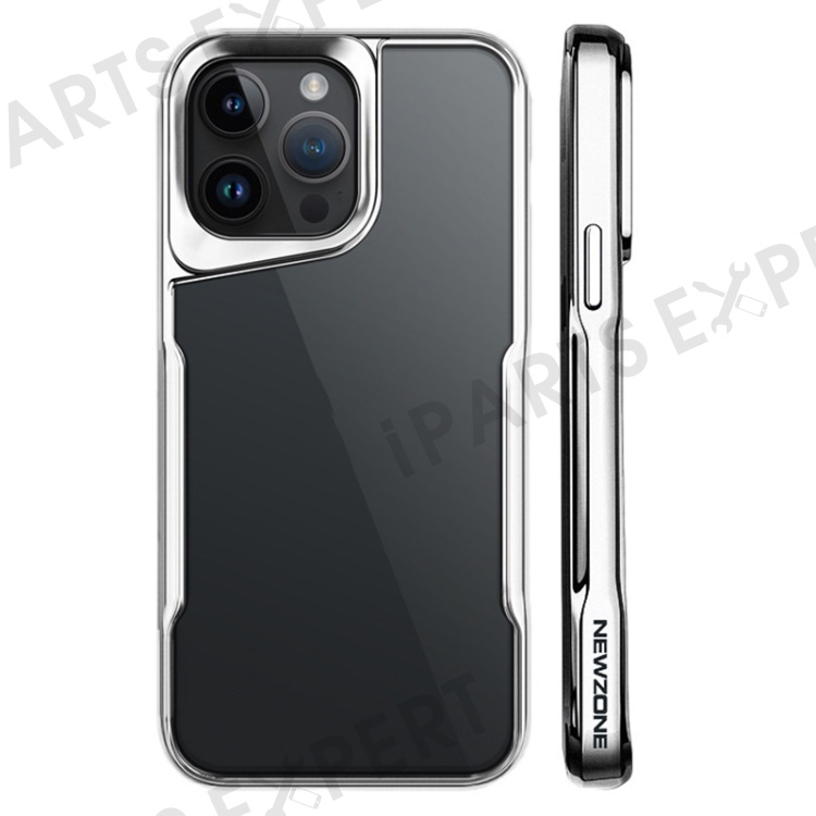 NEWZONE For iPhone 14 Pro Max Cell Phone Case Clear TPU+Acrylic Drop-proof Cover - Titanium Silver