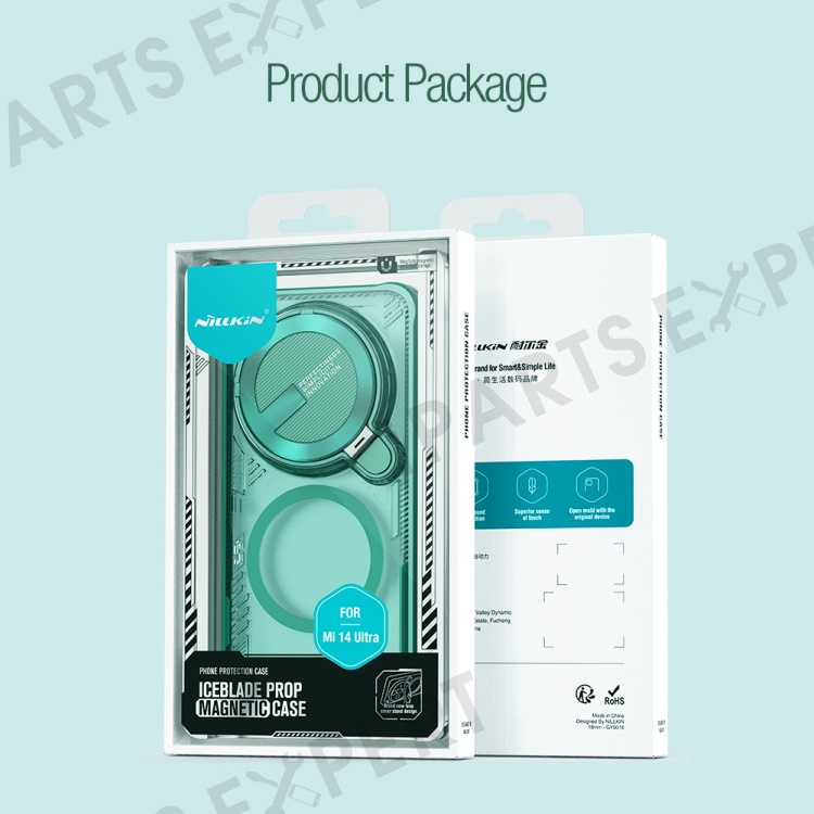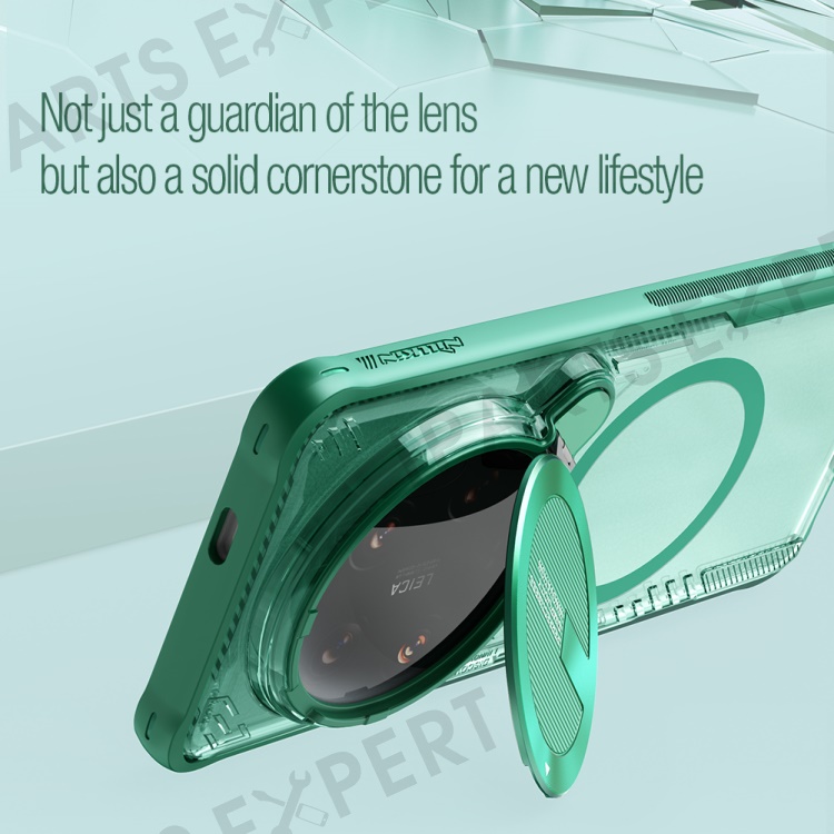 NILLKIN Iceblade CamProp Magnetic Series for Xiaomi 14 Ultra Magneitc Case Kickstand PC+TPU Phone Cover with Lens Lid - Green