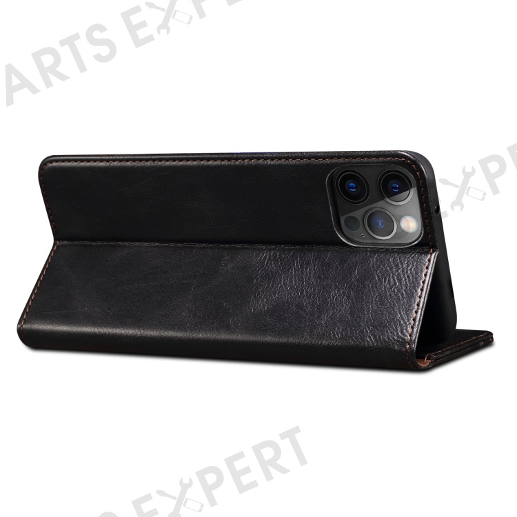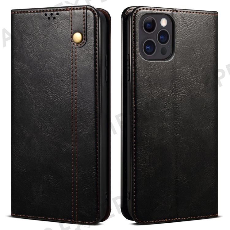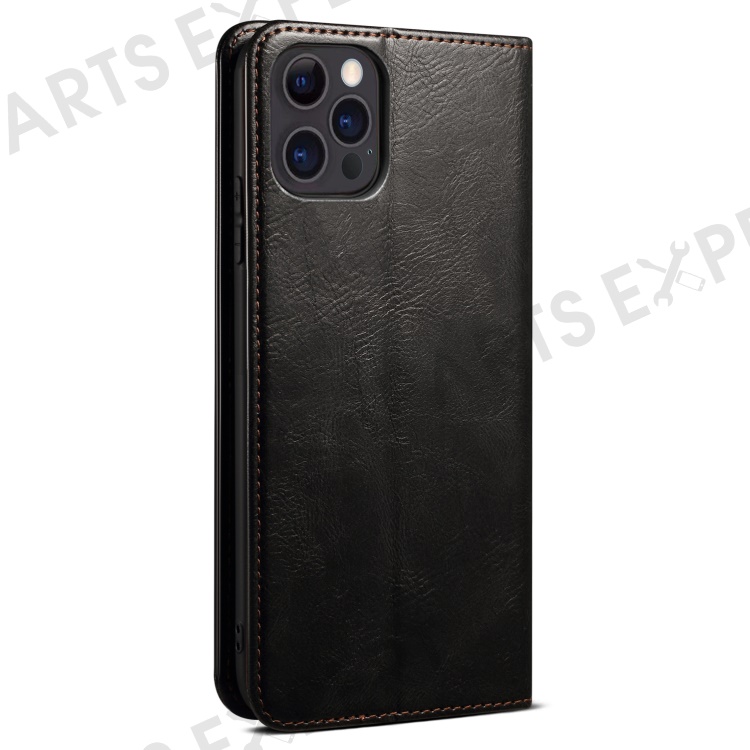 Oil Wax Surface PU Leather + Inner TPU Case Wallet Mobile Phone Shell for iPhone 13 Pro Max 6.7 inch - Black