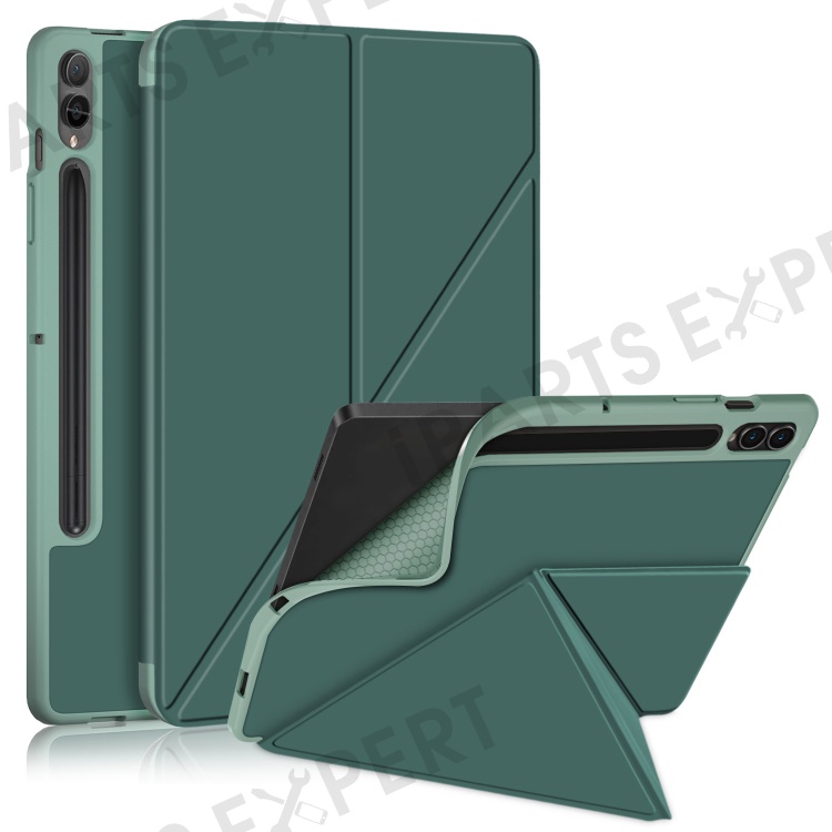 Origami Stand Case for Samsung Galaxy Tab S10+ Wi-Fi SM-X820 SM-X826B / Tab S9+ SM-X810 (Wi-Fi), SM-X816B (5G Global), SM-X818U (5G US) PU Leather Smart Tablet Cover - Blackish Green