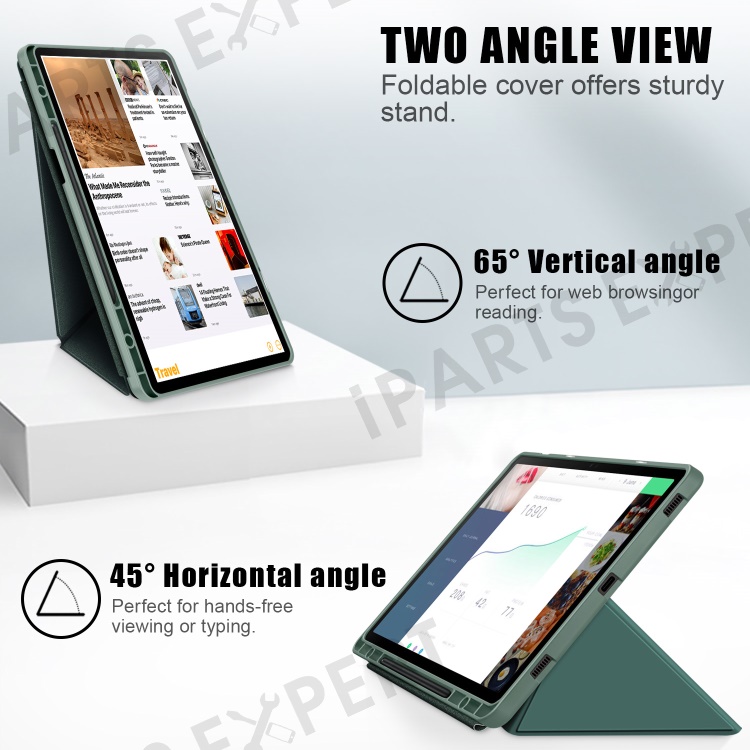 - Innovative origami stand folds into landscape or portrait position, dual-angle design simplifying your work and life