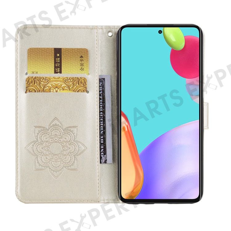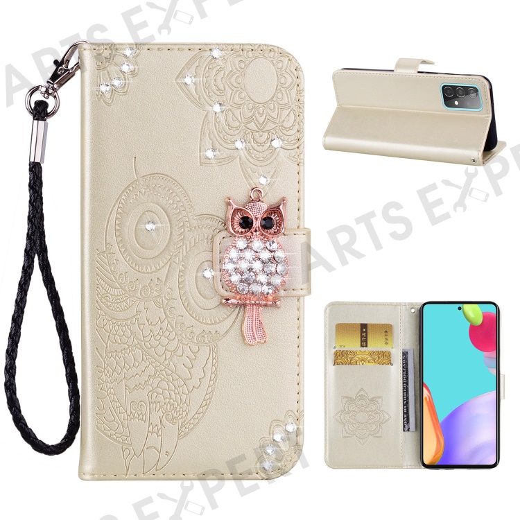 Owl Imprint Rhinestone Decor Wallet Leather Cover for Samsung Galaxy A52 4G/5G / A52s 5G Stand Shell - Gold