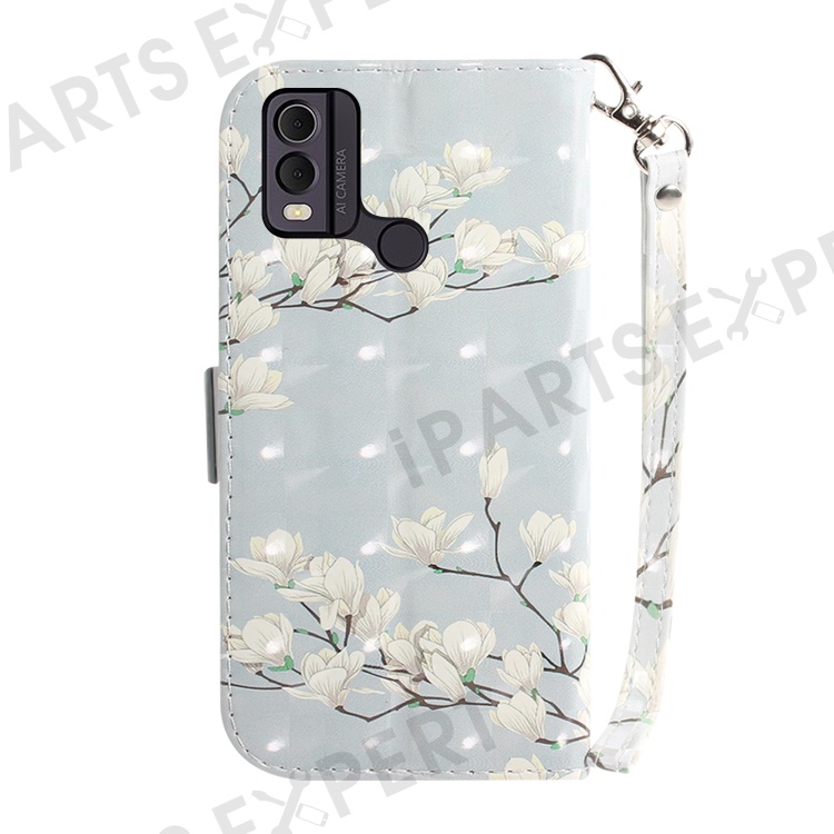 Pattern Printed PU Leather Phone Cover for Nokia C22 Anti-Scratch Wallet Phone Case with Strap - Magnolia