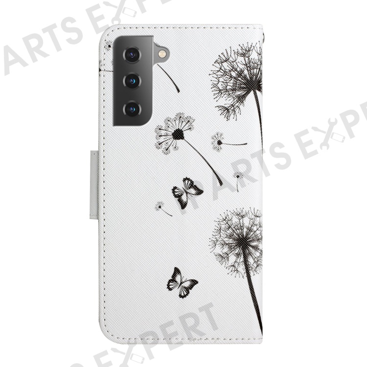 Pattern Printing All-round Protection Leather Phone Case Wallet Stand Cover Shell with Wrist Strap for Samsung Galaxy S22 5G - Dandelion